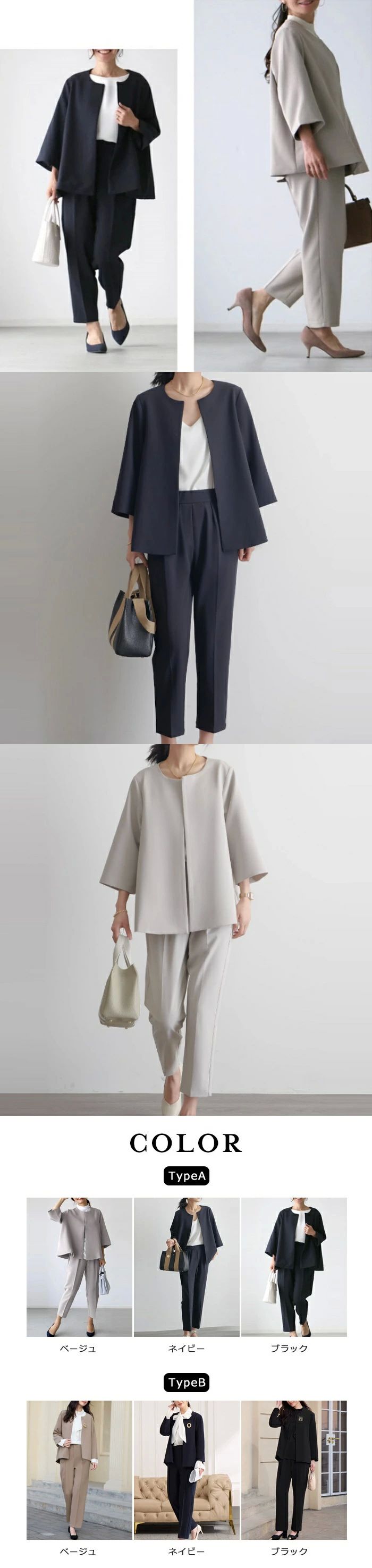 パンツス フォーマルスーツ 結婚式 母 レディースファッション 特集 TYPEA-ブラック TYPEA-ネイビー TYPEA-ベージュ TYPEB-ブラック TYPEB-ネイビー TYPEB-ベージュ M L XL