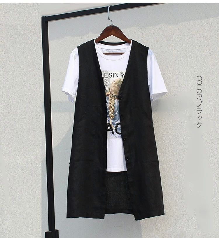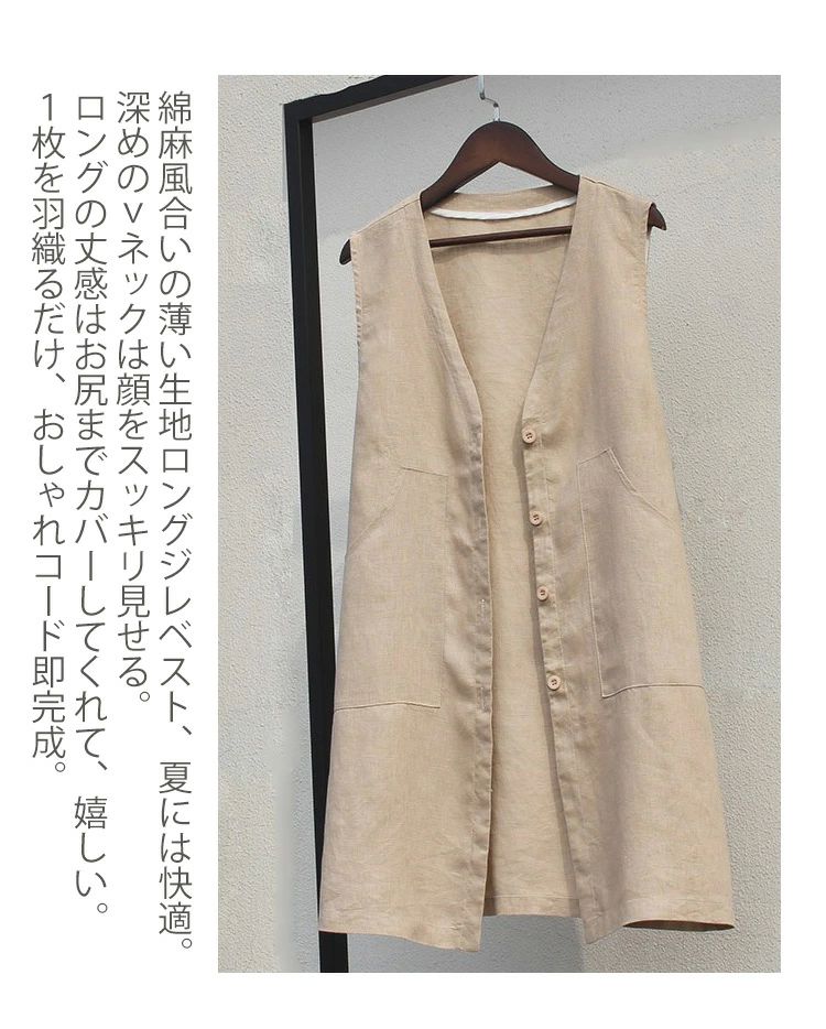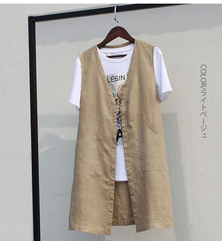 トレンチ 綿麻風 ロングジレ ジレベス レディースファッション 早い者勝ち ブラック ライトベージュ M L XL 2XL