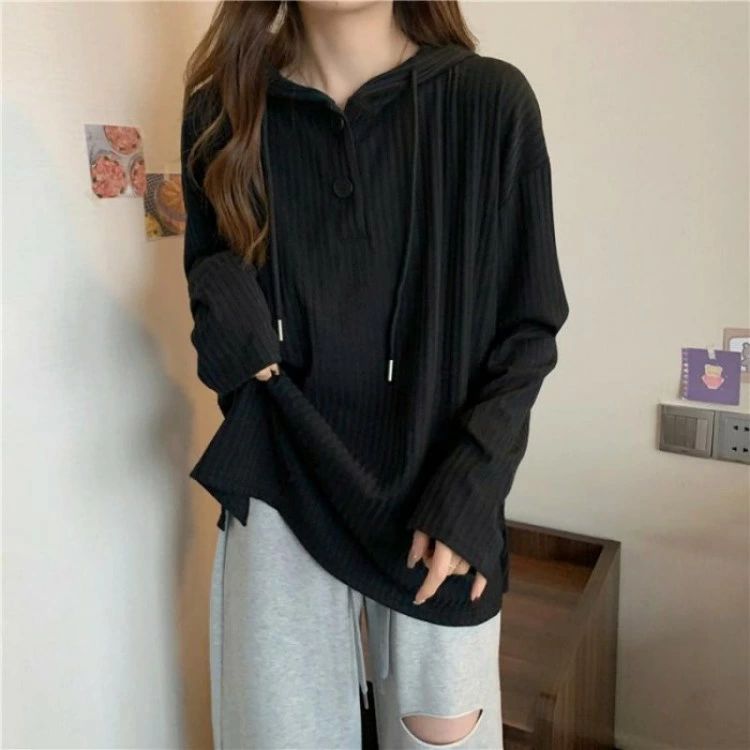 Tシャツ レディース 長袖 フード付き トップス Tシャツ カットソー 通販 ダークグレー グレー ホワイト ブラック M L XL 2XL 3XL 4XL