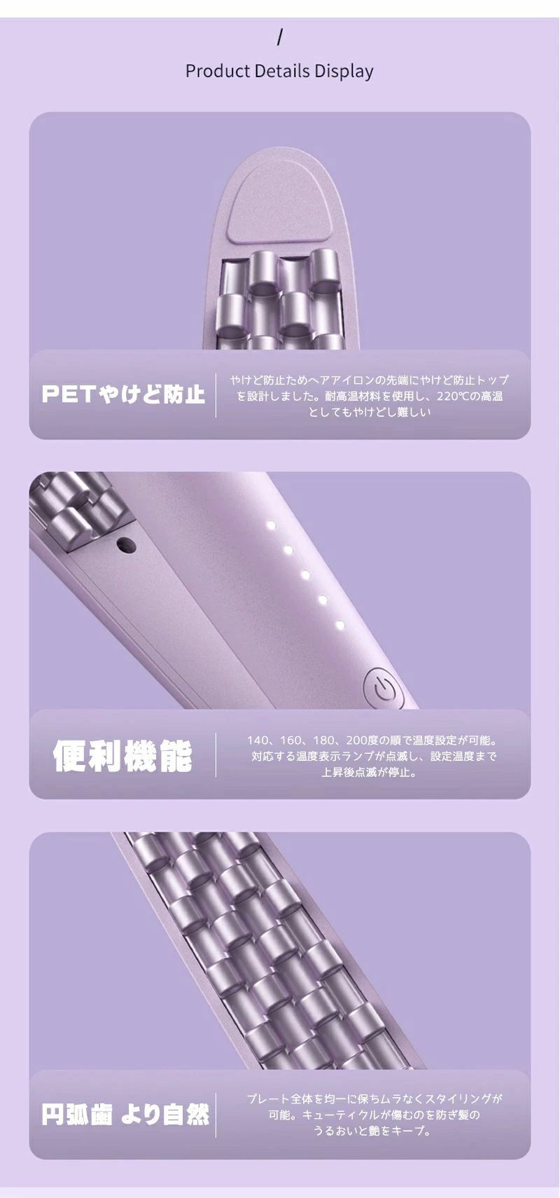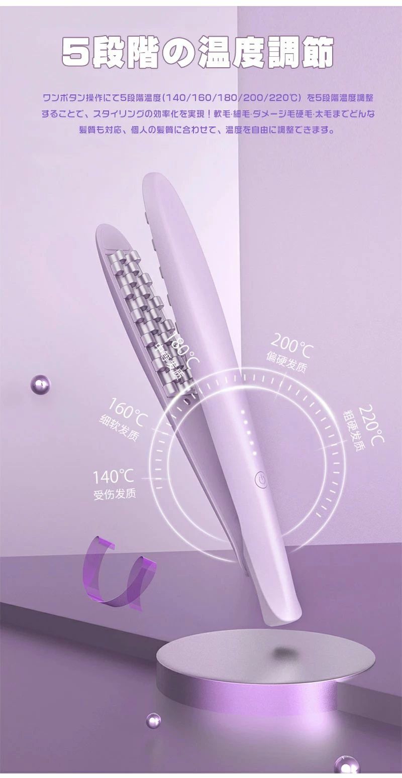 髪を太くする 140℃-210℃ 3段 パープル グリーン