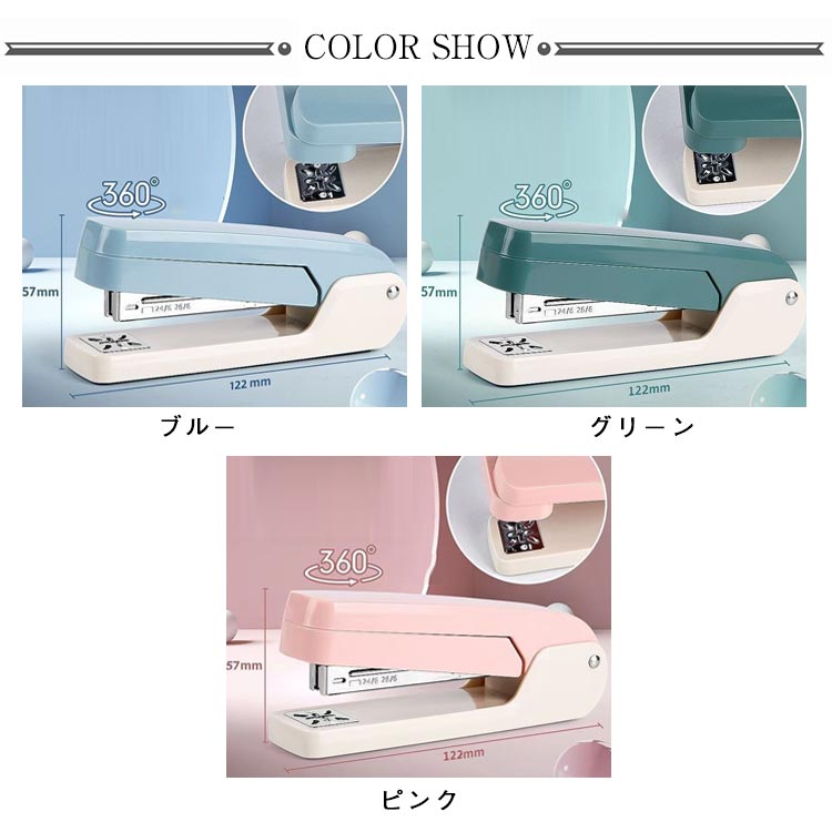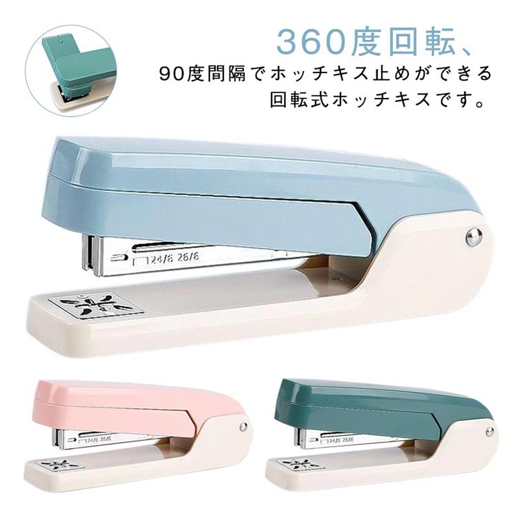 ステープラー ヨコ タテ 文房具 回転 日用品雑貨 文房具 手芸 特集 ブルー グリーン ピンク