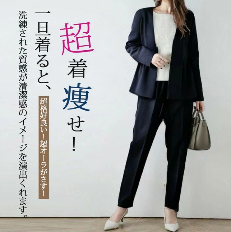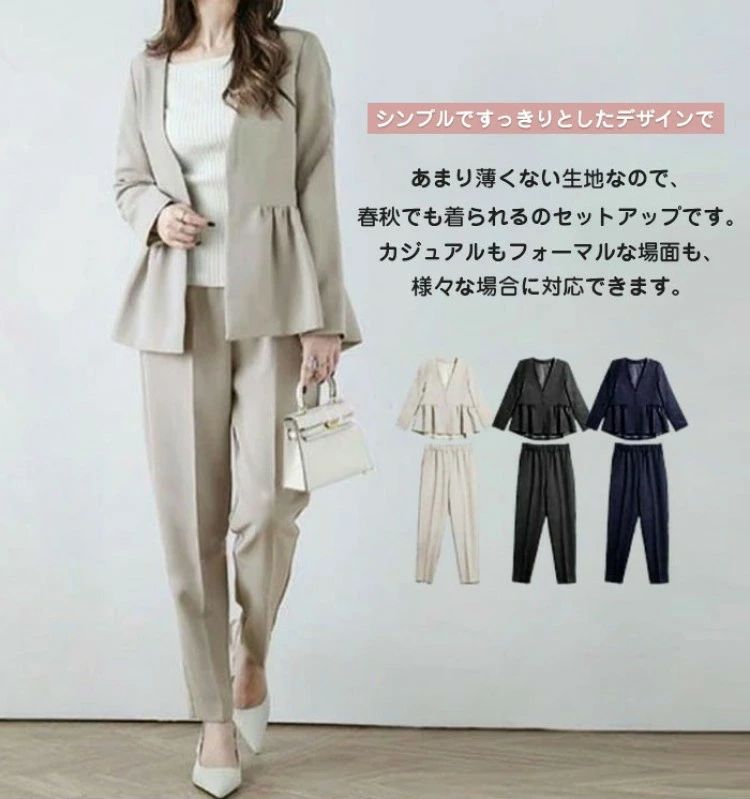 通勤 冠婚葬祭用 入学式 卒 春 カジ スーツ セットアップ パンツスーツ 人気 ブラック ベージュ ネイビー S M L