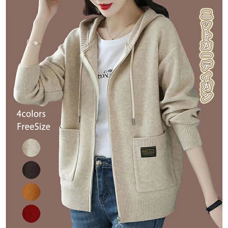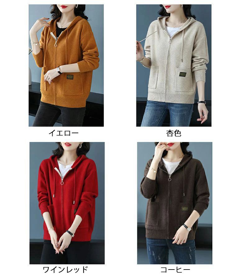 ファス 秋冬 秋 長そで ニットパーカ レディースファッション 新作 イエロー ワインレッド コーヒー 杏色
