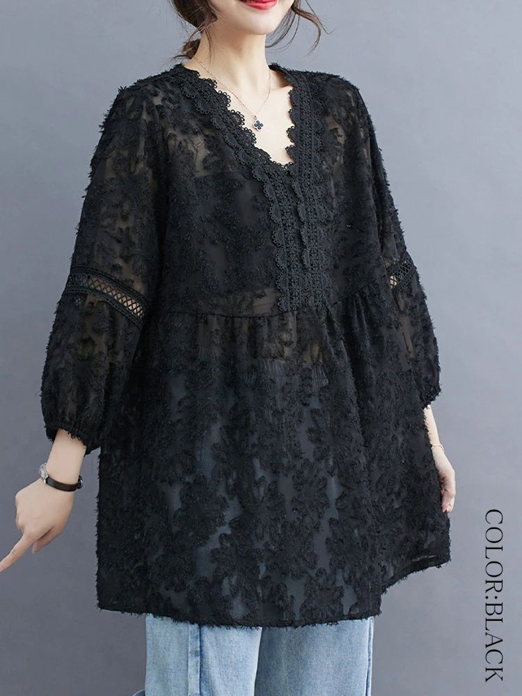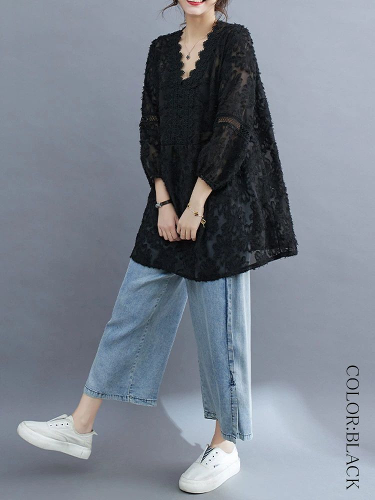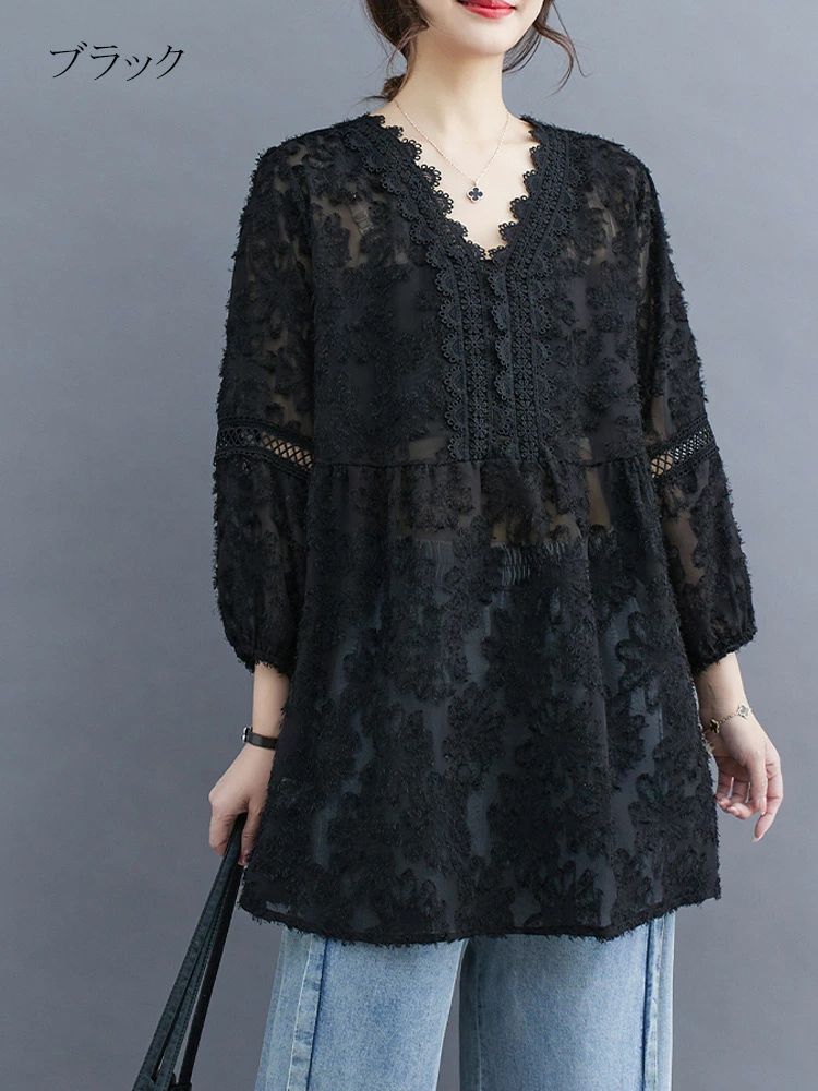 7分 プルオーバー シャツブラウス 春 レディースファッション 続々登場 ブラック ホワイト