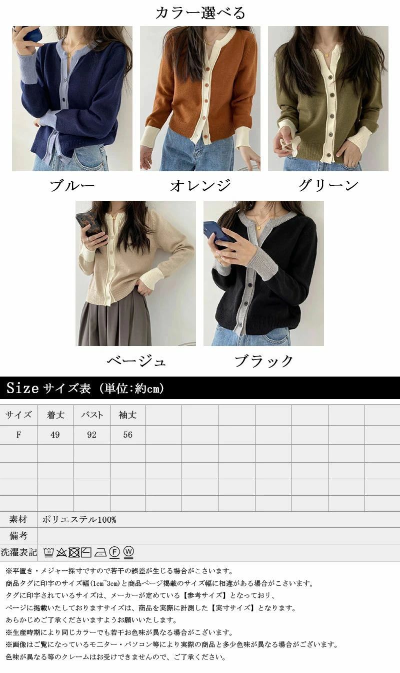 カーディガン レディース 春 秋 冬 トップス ポロシャツ 特集 ブルー オレンジ グリーン ベージュ ブラック
