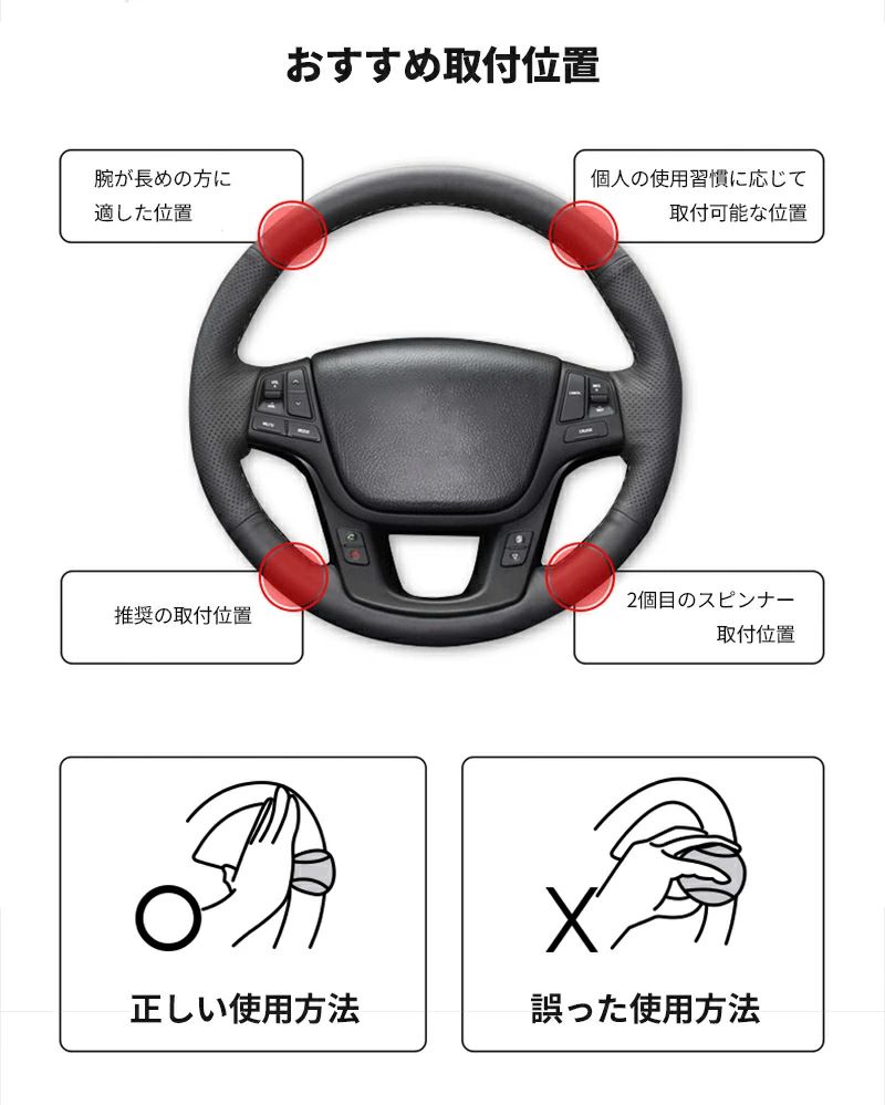 車用 ステアリングノブ 片手操作 駐車