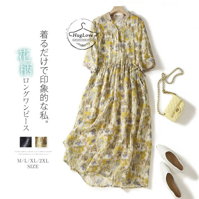 ワンピース レディース 夏 ロングワン レディースファッション 超目玉商品 ネイビー イエロー M L XL XXL