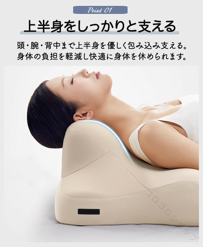 枕 ピロー 首 肩 ストレートネック まくら マクラ 傾斜枕 いびき解消 いびき改善 取り外し可能 背中まで 上半身 仰向け 低反発 姿勢 快適 斜め ごろ寝 むくみ 疲れ 肩こり 軽減 洗 腰痛