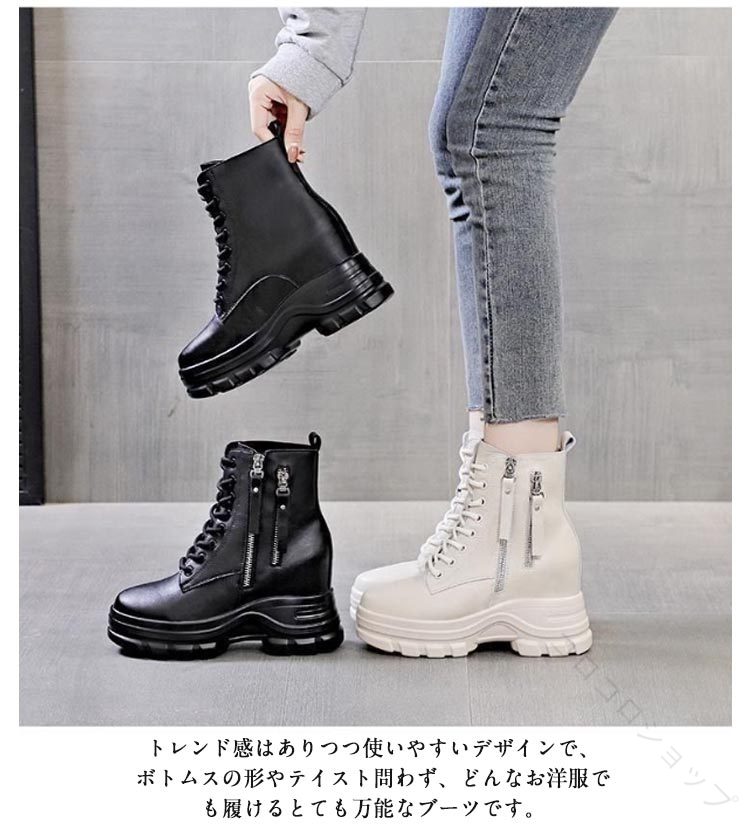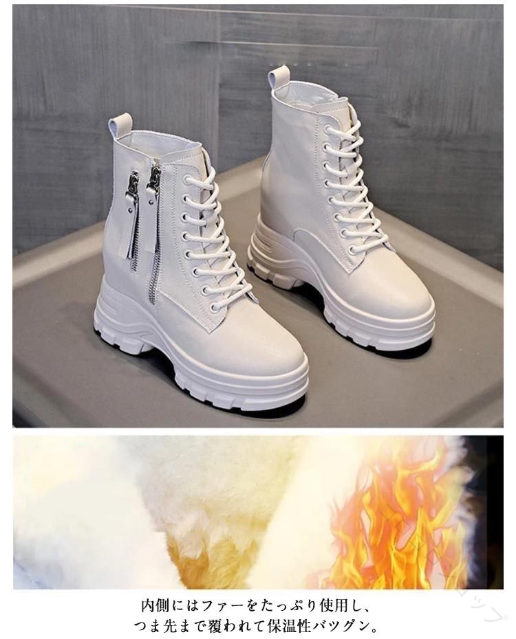 インヒール レースアップブーツ 本革 靴 通販 白(裏起毛) 黒(裏起毛) 35(22.5cm) 36(23cm) 37(23.5cm) 38(24cm) 39(24.5cm) 40(25cm)