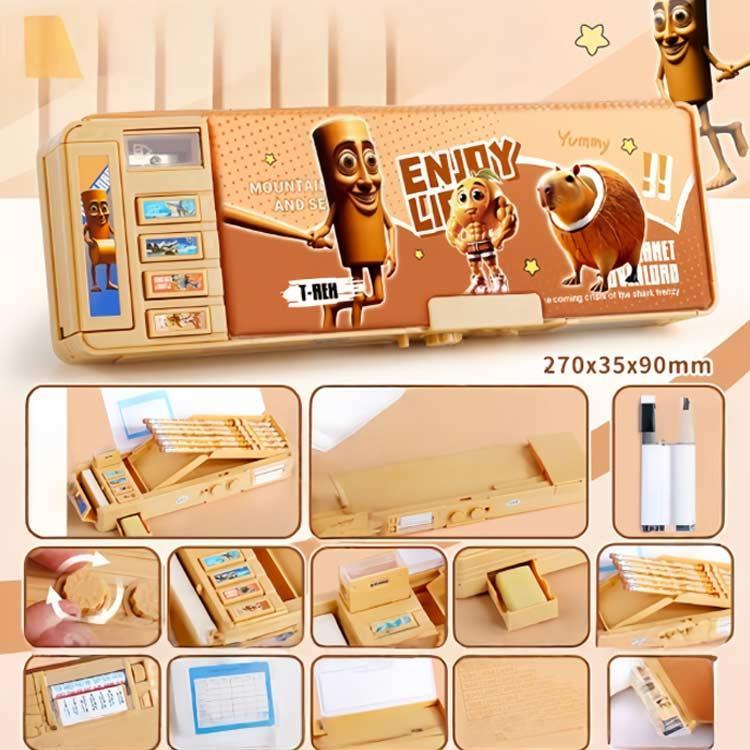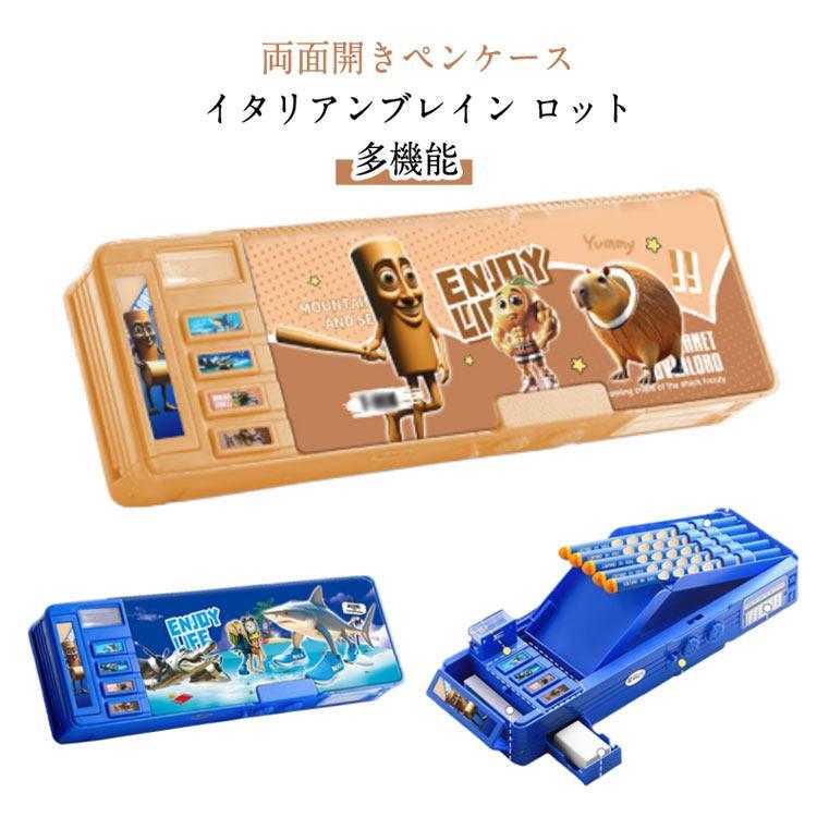イタリアンブレイン ペン立て 両面開きペンケース 両面開き 筆箱 ロット 箱型 鉛筆削り付き ふでばこ ペンケース ペンホルダー 多機能 かわ 小学生