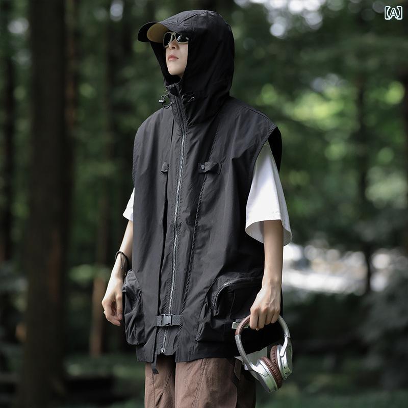 メンズ 機能性 ワーク ベスト アウター 日系 スタイル カジュアル フィット ストリート ファッション 軽量 速乾 多め 通勤 普段使い ポケット