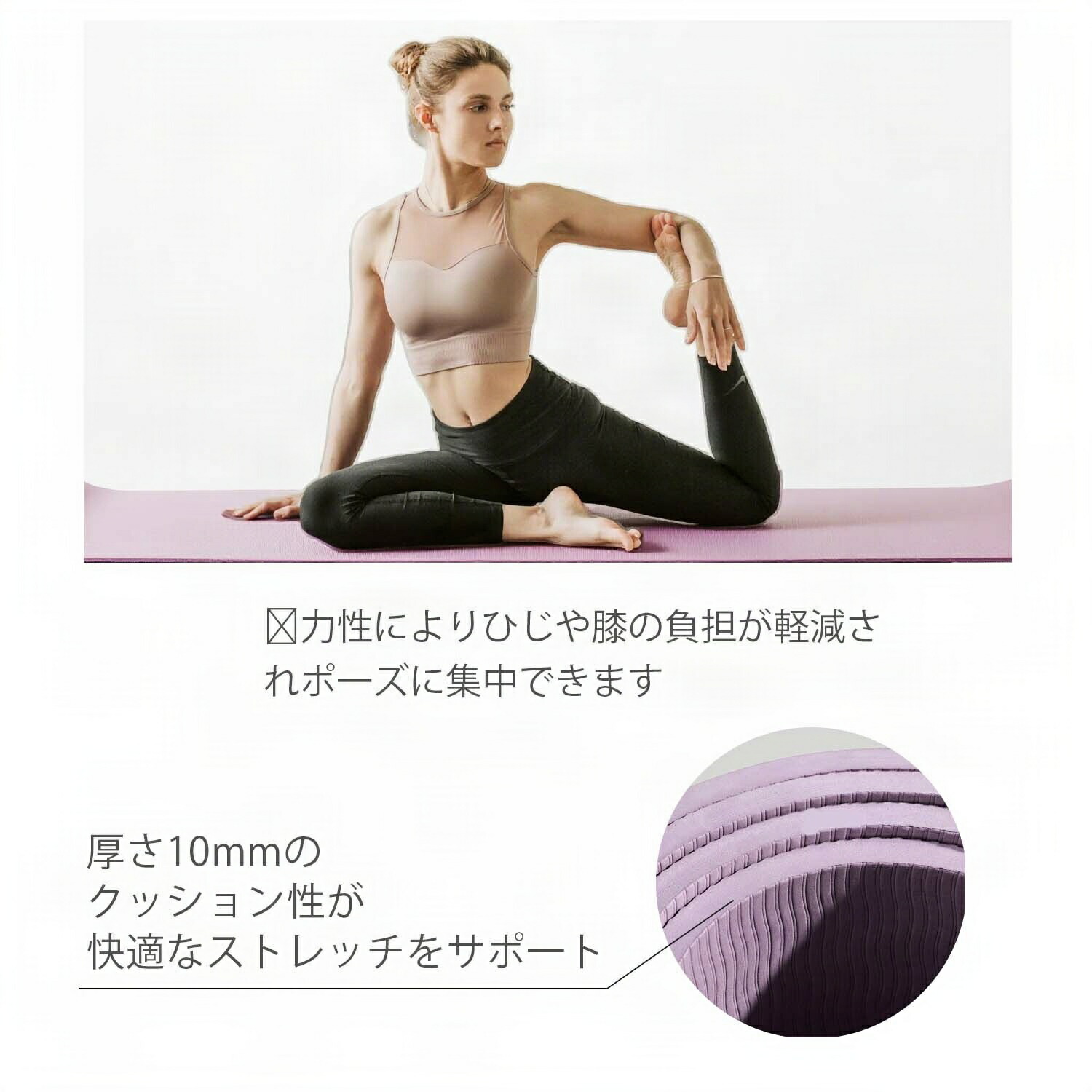 ピラティスマットヨガワークス プロ仕様ヨガマット ヨガトレーニングマット 通気性メッシュバッグ付き 持ち運び便利 プロ マット 10mm厚 高反発NBR素材 滑り止め加工 軽量750g 防音効 超快適