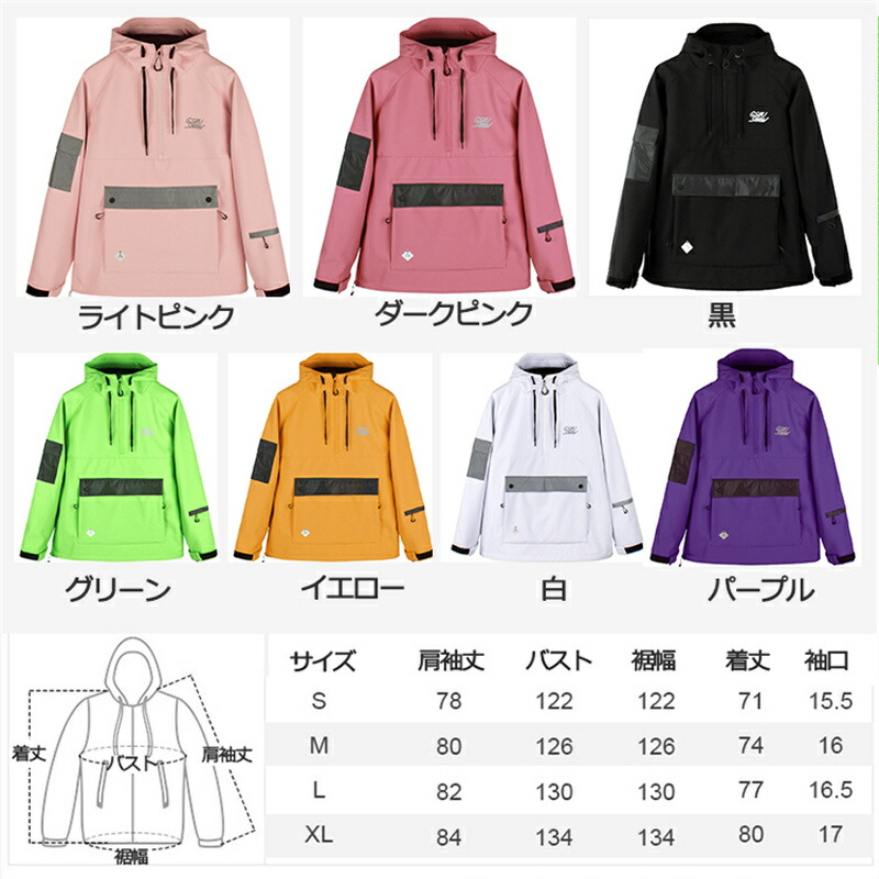 スノーボード ウェア プルオーバー パ ウインタースポーツ スノーボード用ウェア レディースウェア ジャケット 早い者勝ち ライトピンク ダークピンク ブラック グリーン イエロー 白 パープル S M L XL