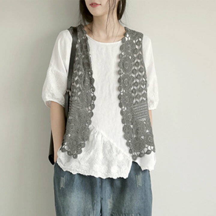 レースベスト ジレ レディース レース レディースファッション 豊富な品揃え グレー ブラック ベージュ