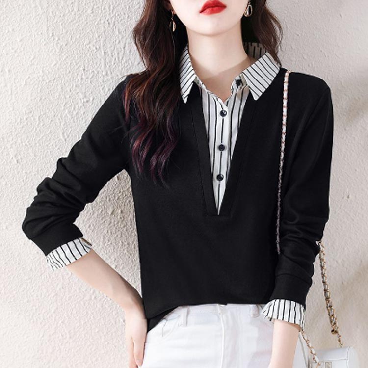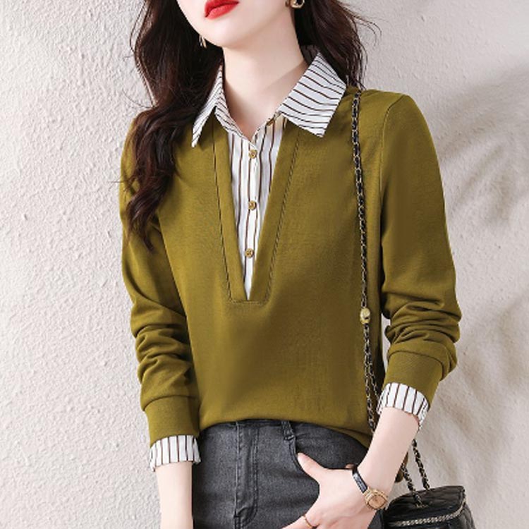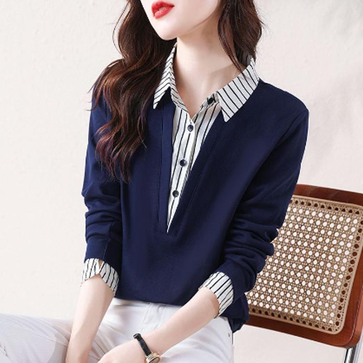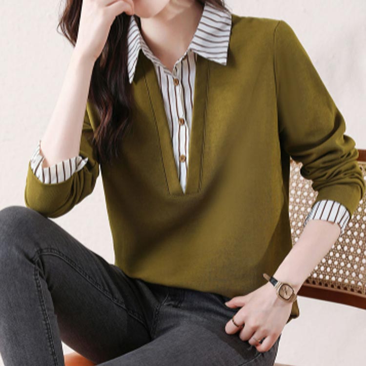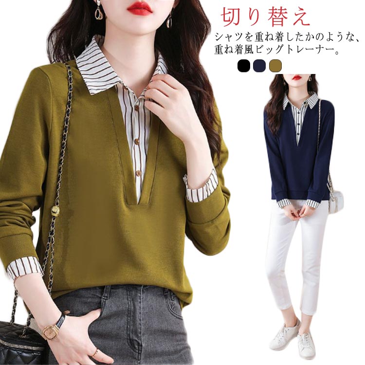 レディース シャツ襟 長袖 30代 ト トップス スウェット トレーナー 通販 ネイビー イエロー ブラック M L XL 2XL 3XL