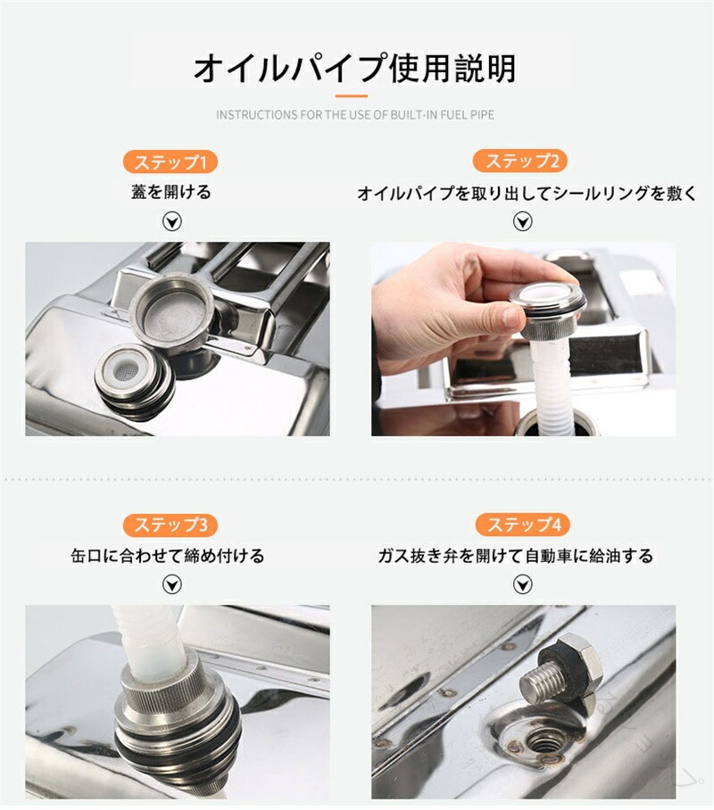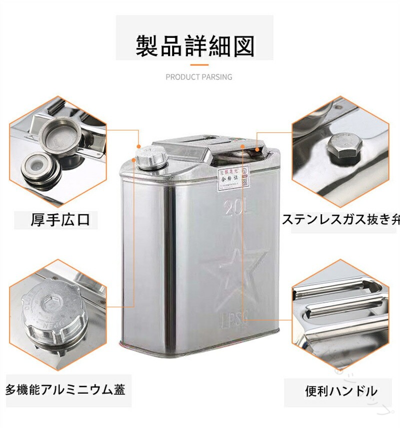 1. ガソリン携行缶 軽量ステンレス製 5L竪型4.5口径 10L竪型4.5口径 15L竪型4.5口径 20L竪型4.5口径 5L竪型3.5口径 10L竪型3.5口径 15L竪型3.5口径 20L竪型3.5口径 10L方型4.5口径 20L方型4.5口径 25L方型4.5口径 30L方型4.5口径 35L方型4.5口径 40L方型4.5口径 10L方型3.5口径