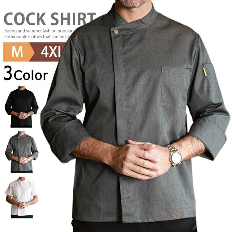 コックコート 長袖 半袖 男女兼用 調 M L XL 2XL 3XL 4XL 半袖+白 半袖+グレー 半袖+黒 長袖+白 長袖+グレー 長袖+黒