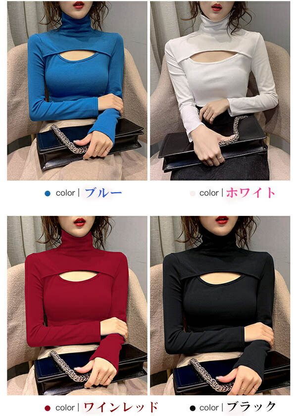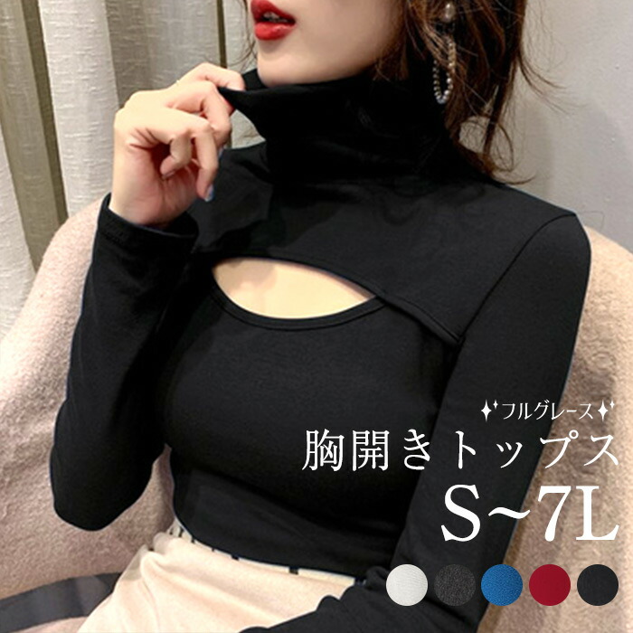 再入荷 胸開きタートルネック トップス レディースファッション 通販 ブラック グレー ホワイト ブルー ワインレッド S M L 2L(XL) 3L(2XL) 4L(3XL) 5L(4XL) 6L(5XL) 7L(6XL)