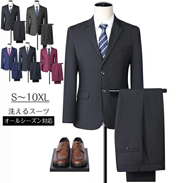 メンズ スーツ 上下セット 2つボタン スーツ セットアップ スーツ 人気 ブラック ネイビー グレー ワインレッド ブルー S M L 2L(XL) 3L(2XL) 4L(3XL) 5L(4XL) 6L(5XL) 7L(6XL) 8L(7XL) 9L(8XL) 10L(9XL) 11L(10XL)