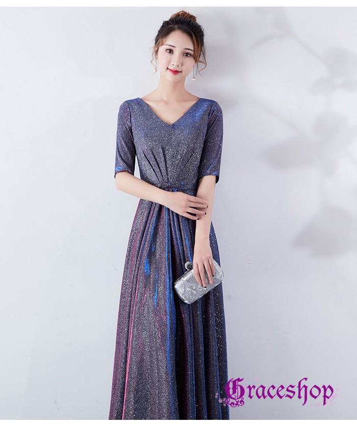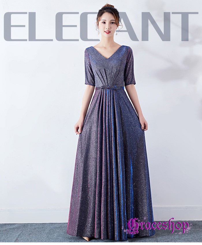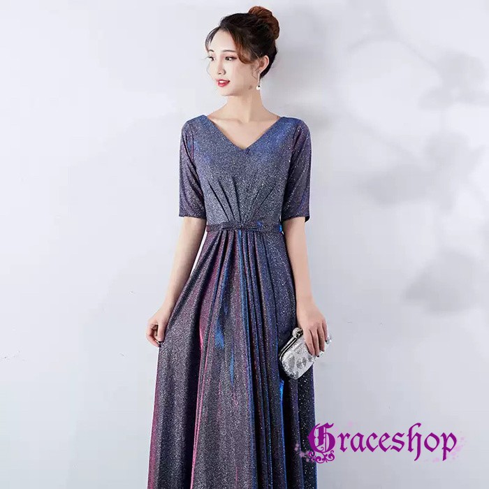 イブニングドレス パーティードレス レディース マキシワンピース ロング丈 Vネック 半袖 キラキラ お呼ばれ 司会者 披露宴 謝恩会 コーラス 演奏会 編み上げデザイン 上品 可愛 フォーマルドレス