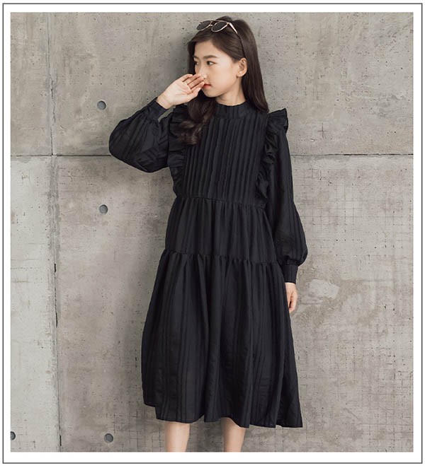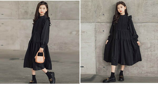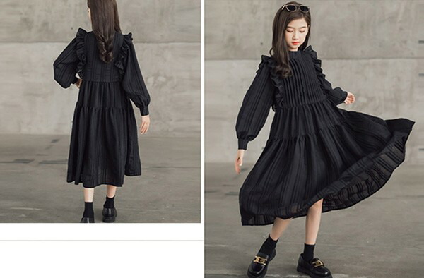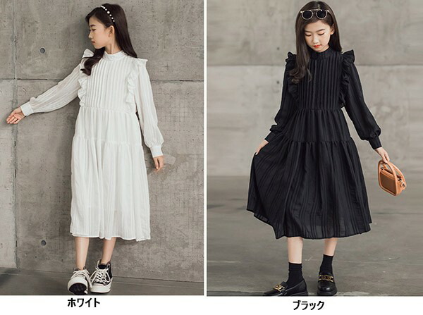 子どもワンピース 子供ワンピース 長袖 キッズ ワンピース 豊富な品揃え ブラック ホワイト 120 130 140 150 160 165