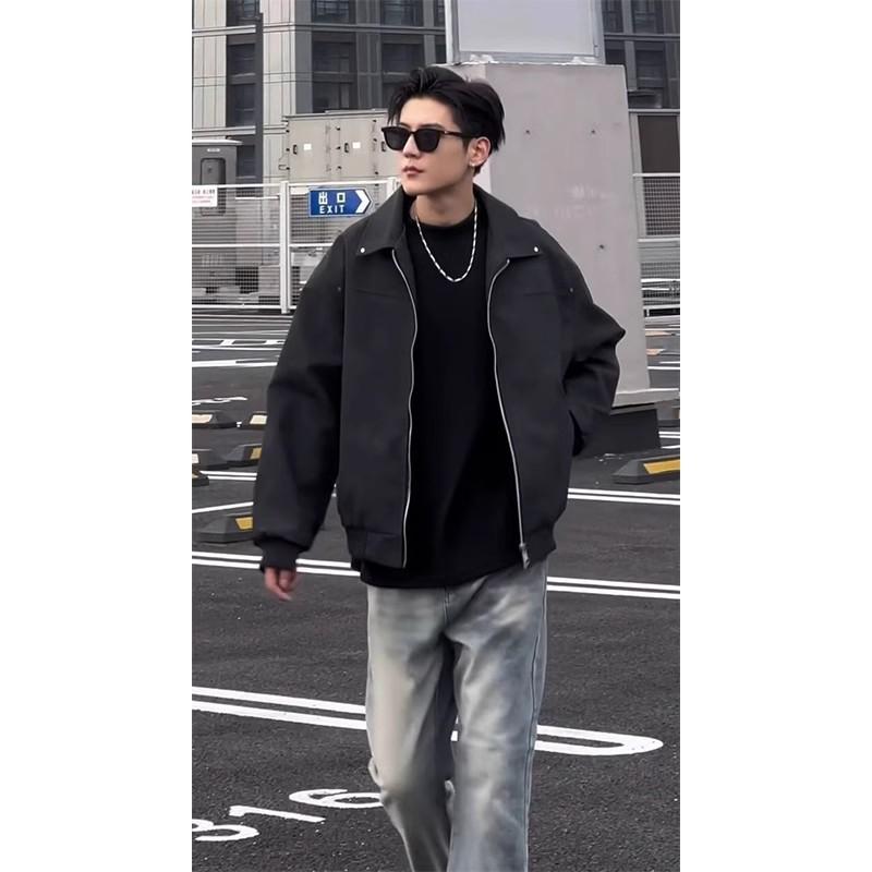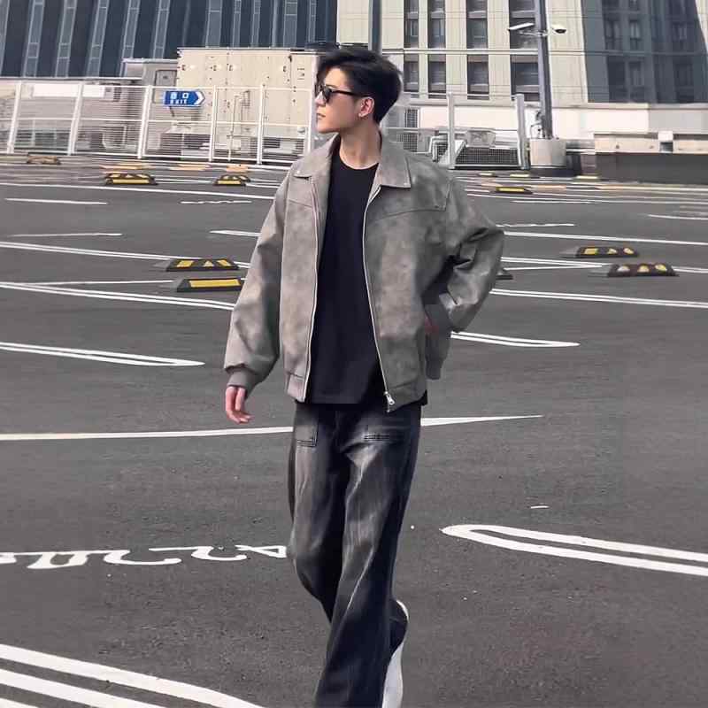ジャケット メンズ PUレザー レザージャケット ショート丈 灰色 グレー 翻襟 襟付き ライダースジャケット バイカージャケット アウター トップス ゆったり ルーズ 春秋 カジュアル