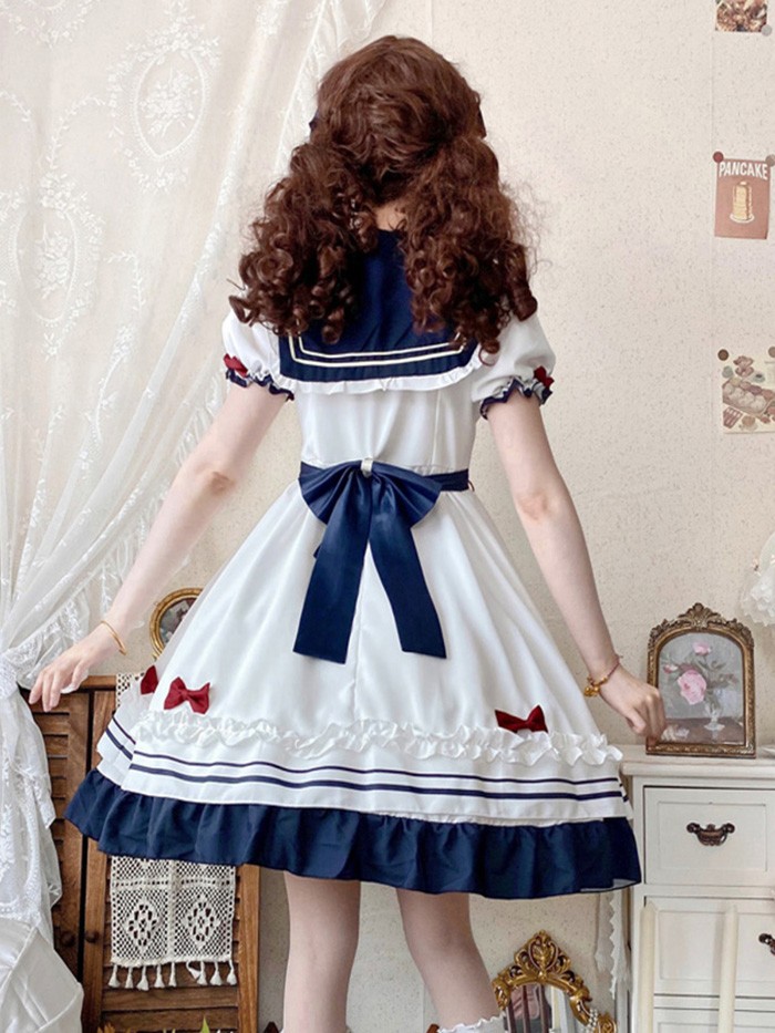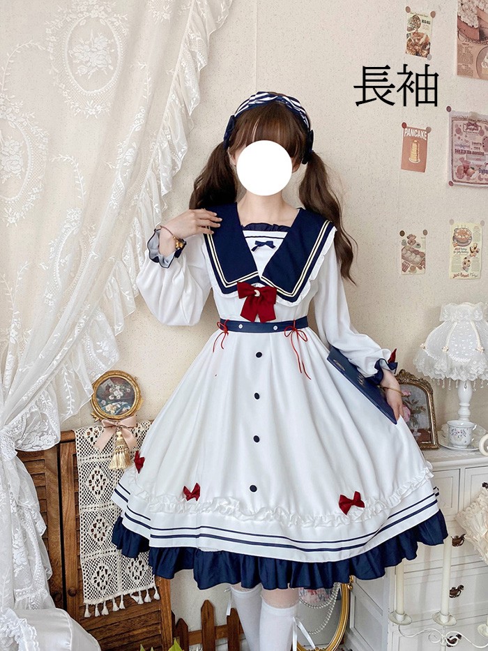 セーラー服風 ワンピース レディース レディースファッション 超目玉商品 半袖 長袖 S M L 2L(XL)