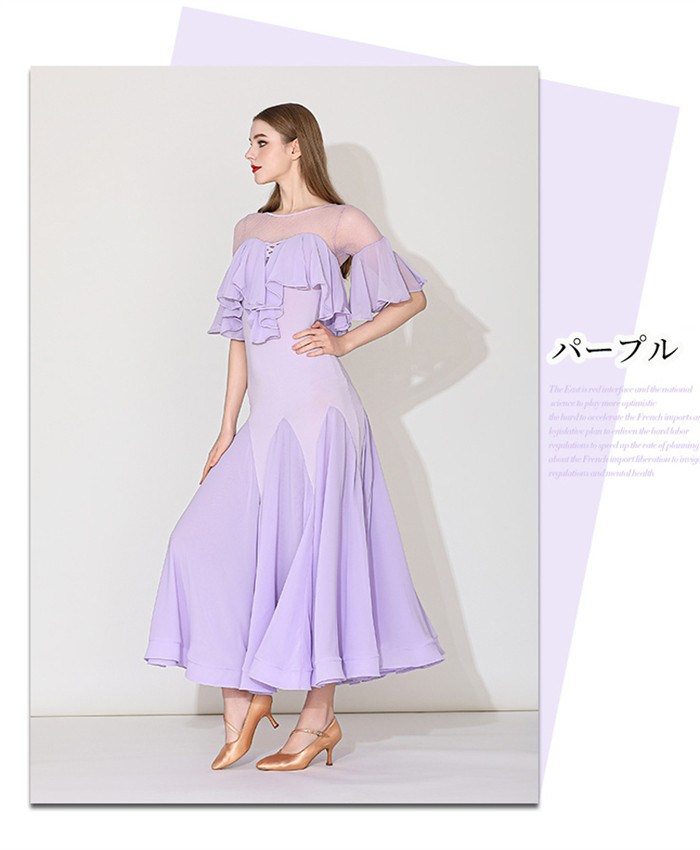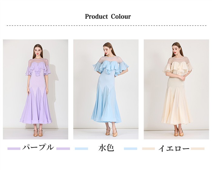社交ダンスドレス レディース S~3L 体操 ダンス 社交ダンス ウェア 人気 パープル 水色 イエロー S M L 2L(XL) 3L(2XL)