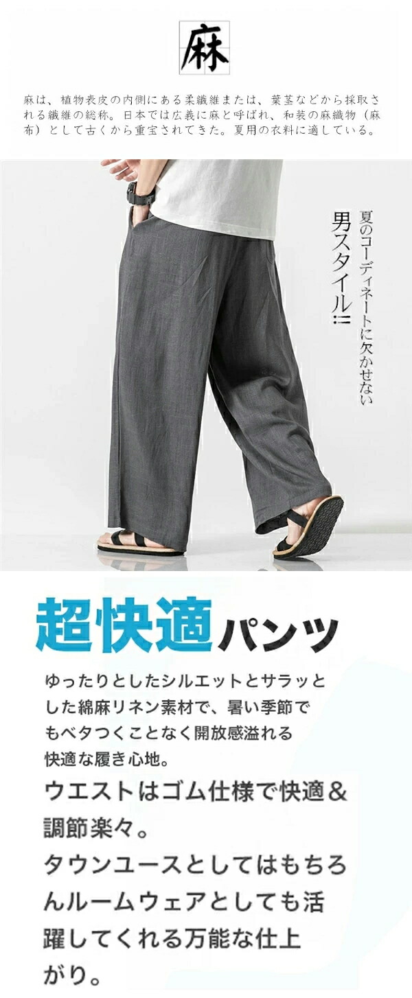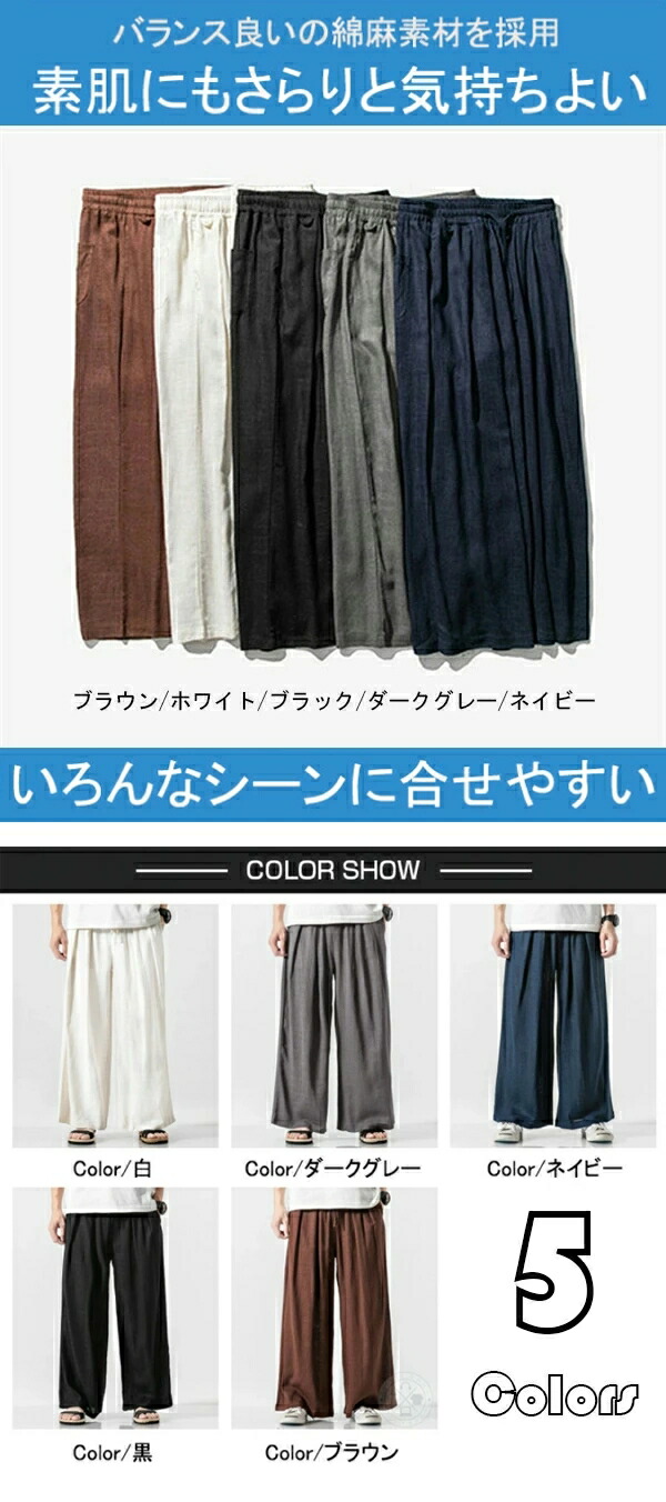 ワイドパンツ メンズ リネン 麻 ラウ メンズファッション 早い者勝ち M L 2L(XL) 3L(2XL) 4L(3XL) 5L(4XL) 6L(5XL) ネイビー ブラック ブラウン ホワイト ダークグレー