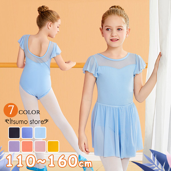 バレエ レオタード 子供用 コットン 綿 セパレート スカート付き ジュニア 黒 ストレッチ 伸縮 練習用 レッスン着 新体操 人気 おすすめ バレエ用品 水色 ブラック 黄色 オレンジ パ イエロー