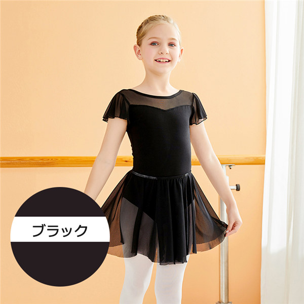 バレエ レオタード 子供 黒 スカート付き 長