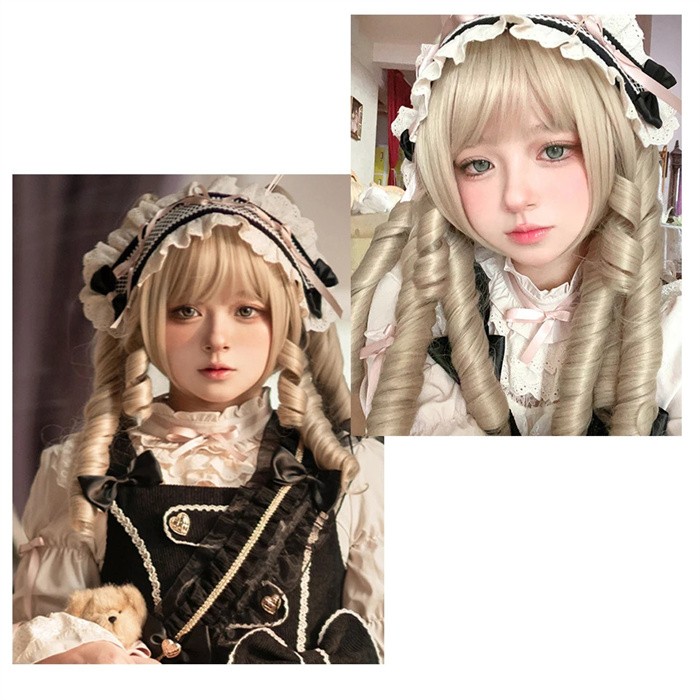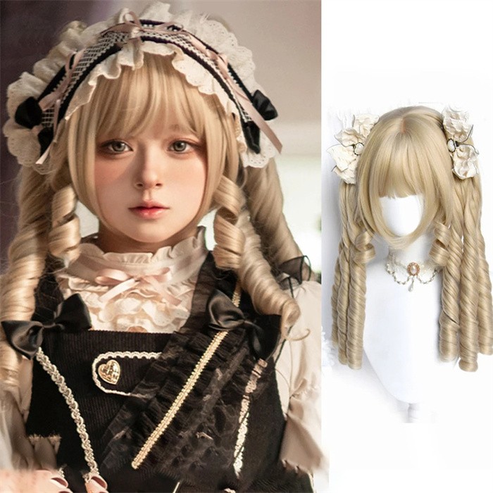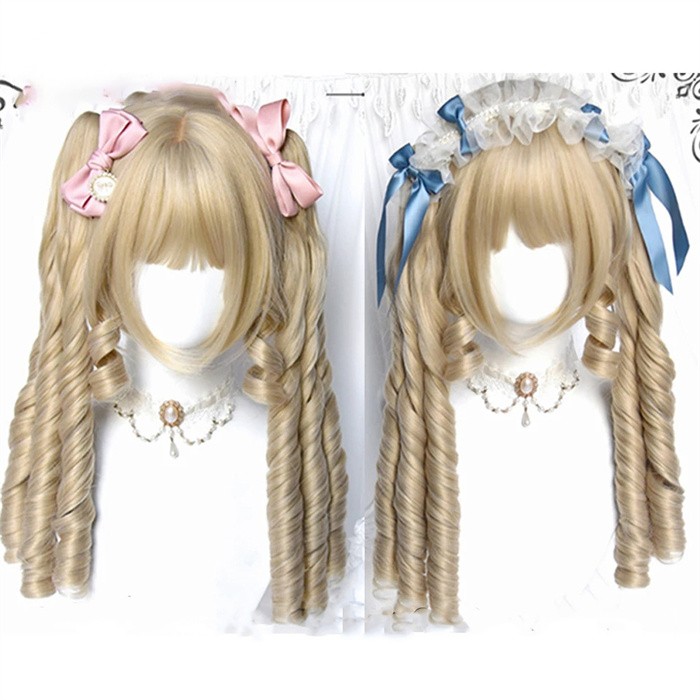 ウィッグ ロリータ ツインテール 金髪 ロング カール 姫系 フルウィッグ レディース 可愛い メイド風 クラシカル ゴスロリ 耐熱 かつら wig 原宿系 コスプレ イベント パーティー 仮装 撮影