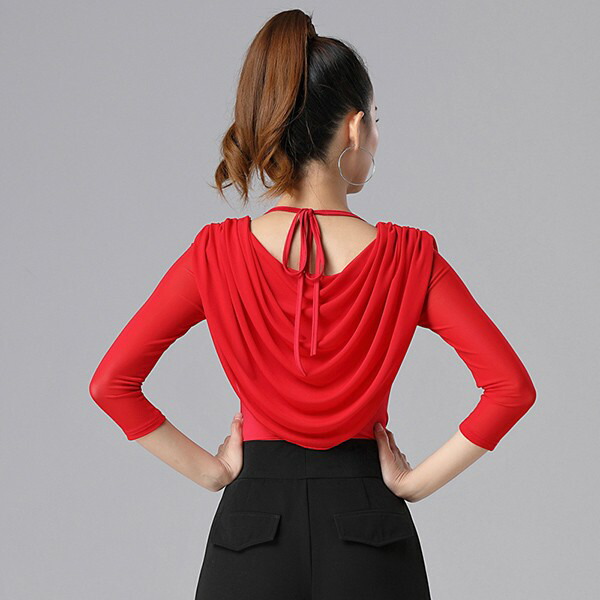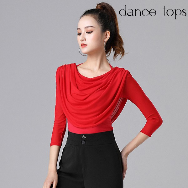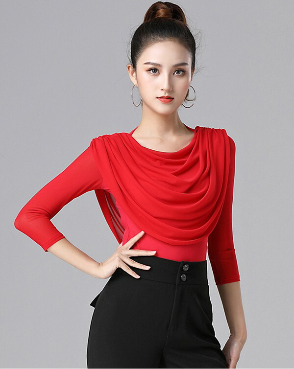 社交ダンス トップス 社交ダンス衣装 体操 ダンス 社交ダンス ウェア 通販 ブラック レッド M L 2L(XL) 3L(2XL) 4L(3XL)