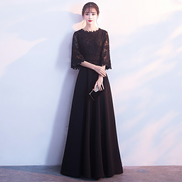 ロングドレス 演奏会 黒 フォーマル ワンピー