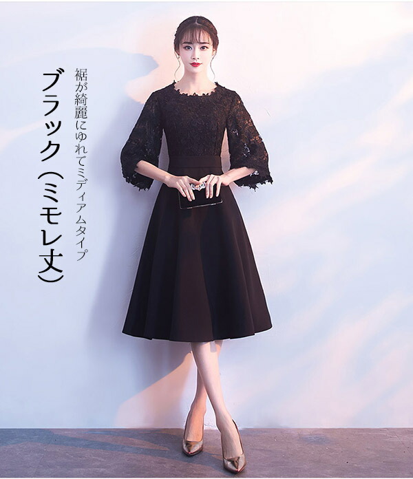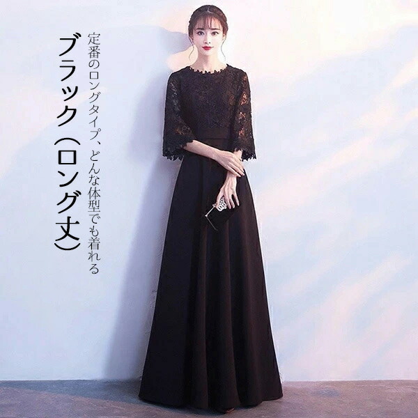 ロングドレス 母親 結婚式 ワンピース ドレス 新登場! XS S M L 2L(XL) 3L(2XL) ブラック:ミモレ丈 ブラック:ロング丈