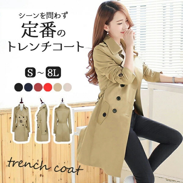 スプリングコート レディース トレンチ コート ジャケット 豊富 S M L 2L 3L 4L 5L 6L 7L 8L ベージュ ブラック ワインレッド ネイビー ライトベージュ レッド