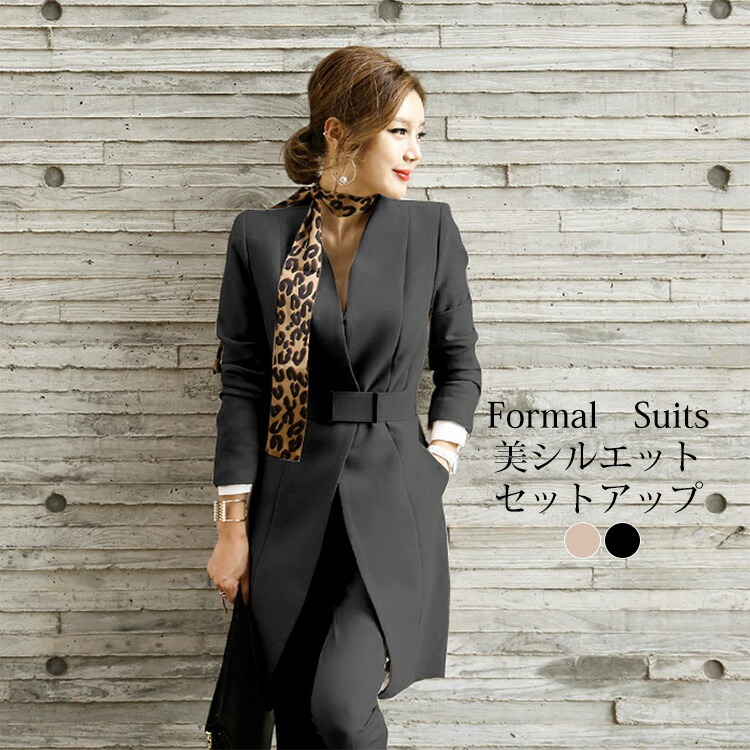 スーツ レディース パンツスーツ セッ スーツ セットアップ パンツスーツ 特集 S M L XL 黒 ココア色