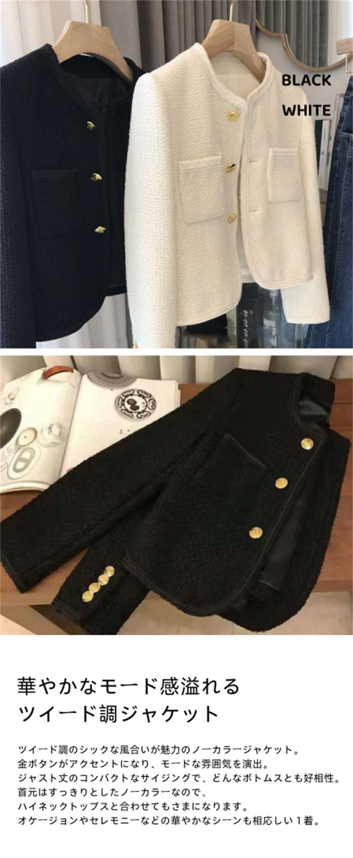 ツイードジャケット ジャケット レディ レディースファッション 豊富な品揃え ホワイト ブラック S M L XL