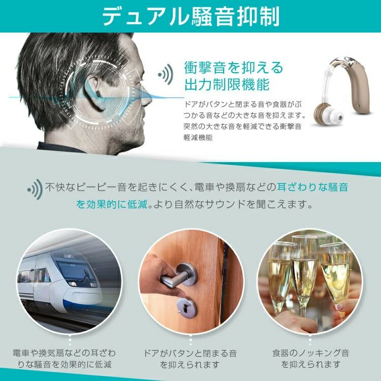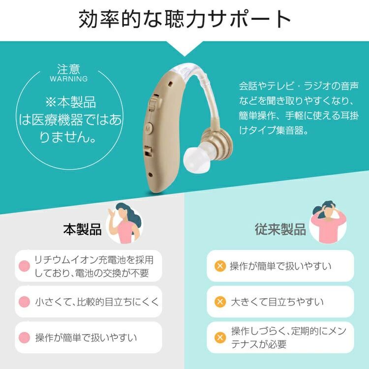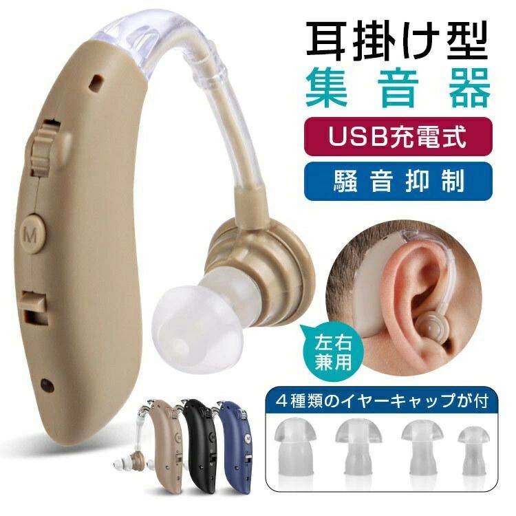 敬老の日 デュアル騒音抑制 4段階のボリューム調節 ハウリング防止 騒音抑制 USB充電式 耳掛け型集音器 クリアで自然な聞こえ 左右兼用