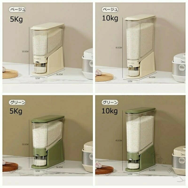 新品 米びつ スリム ライスストッカー 保存容器 調味料入れ 米びつ 人気 ベージュ グリーン 5KG 10KG