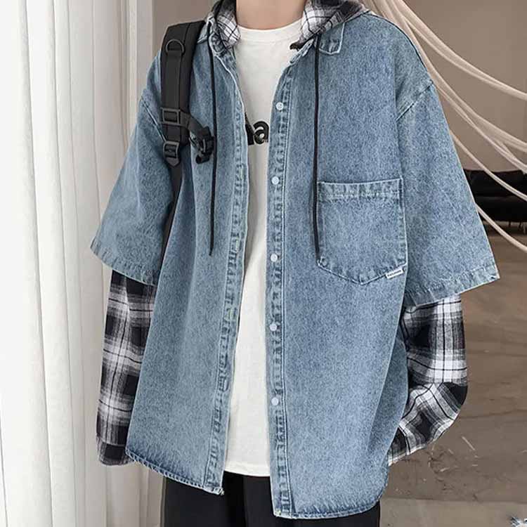 風 デニムシャツ 羽織り M-5L 重 メンズファッション 早い者勝ち ブラック ブルー M L 2L 3L 4L 5L