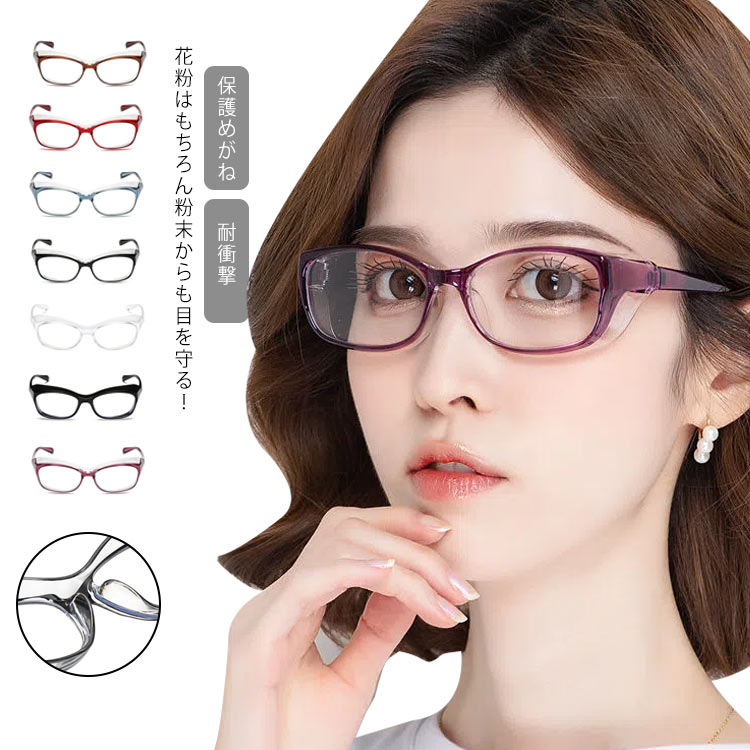 曇らない 花粉対策メガネ 軽量 クリア フールブラック パープル クリアブラック ブルー クリア レッド 茶色