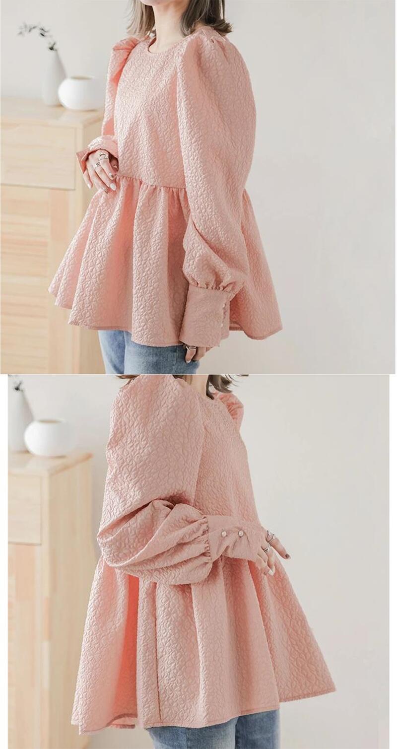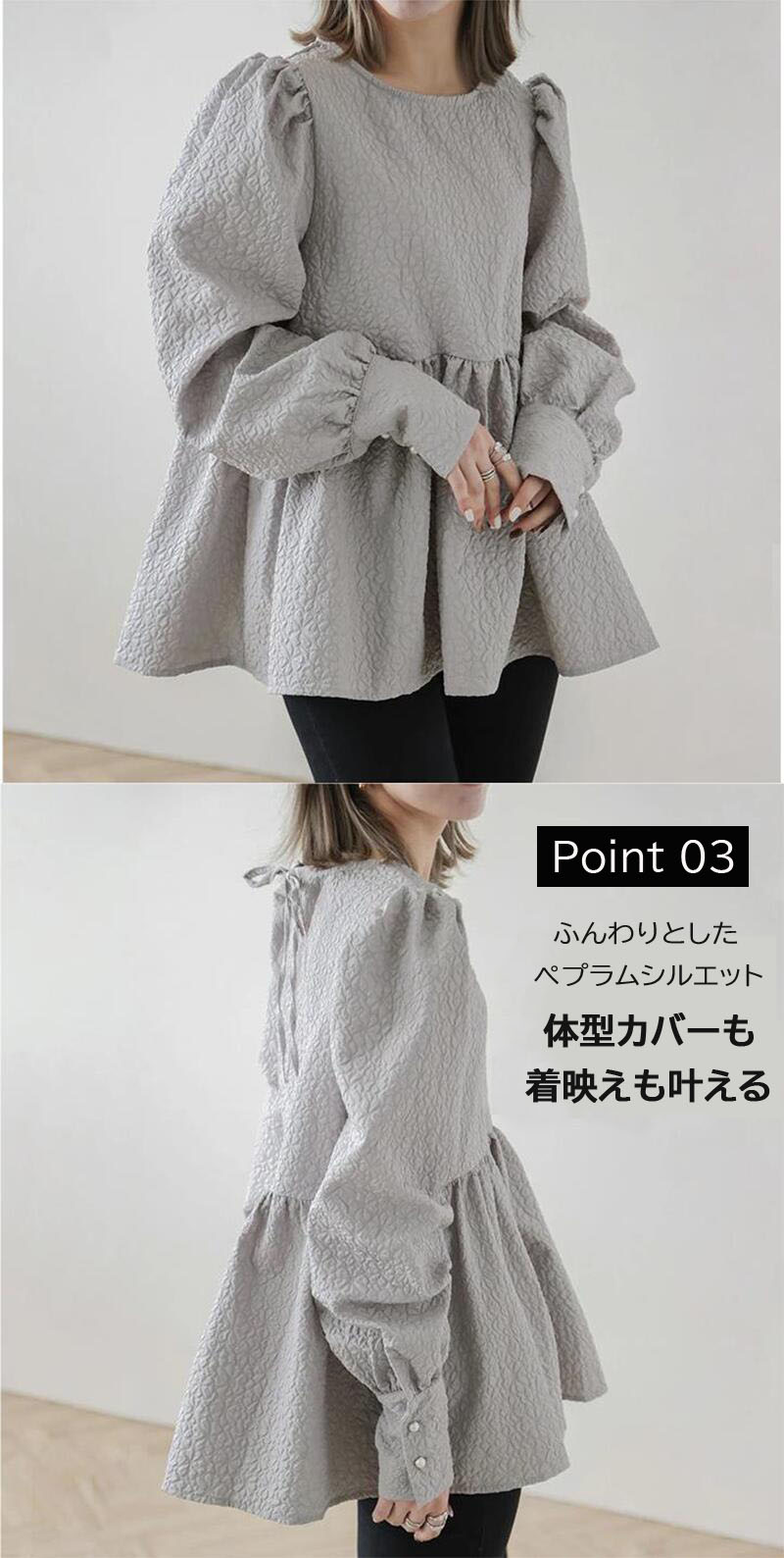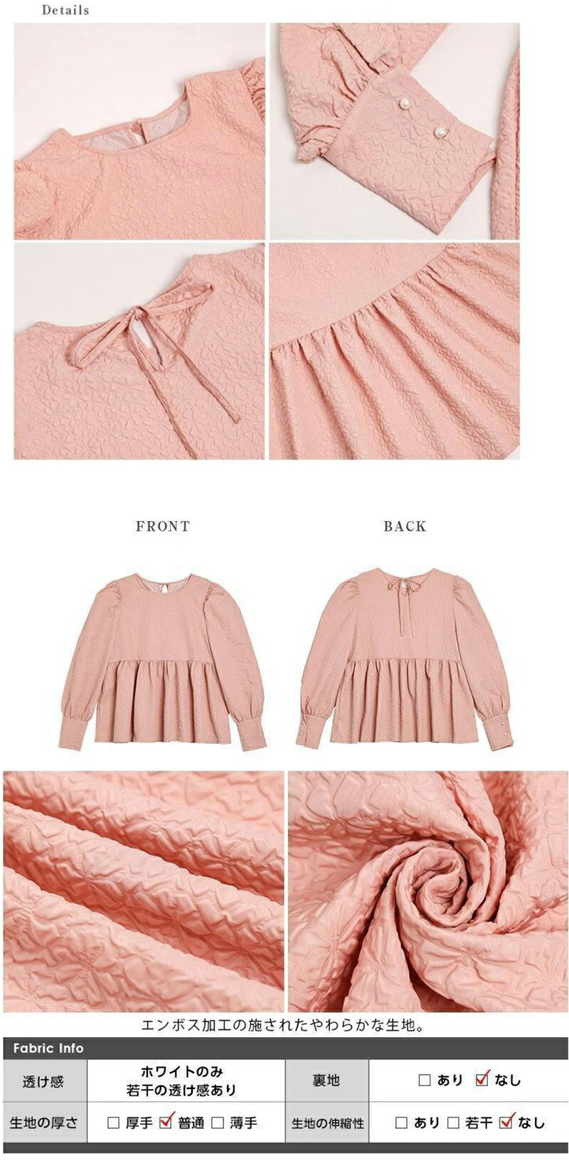 ジャガードブラウス エンボス加工 Aラ トップス シャツ ブラウス 新登場! M L ブラック ホワイト ピンク グレー