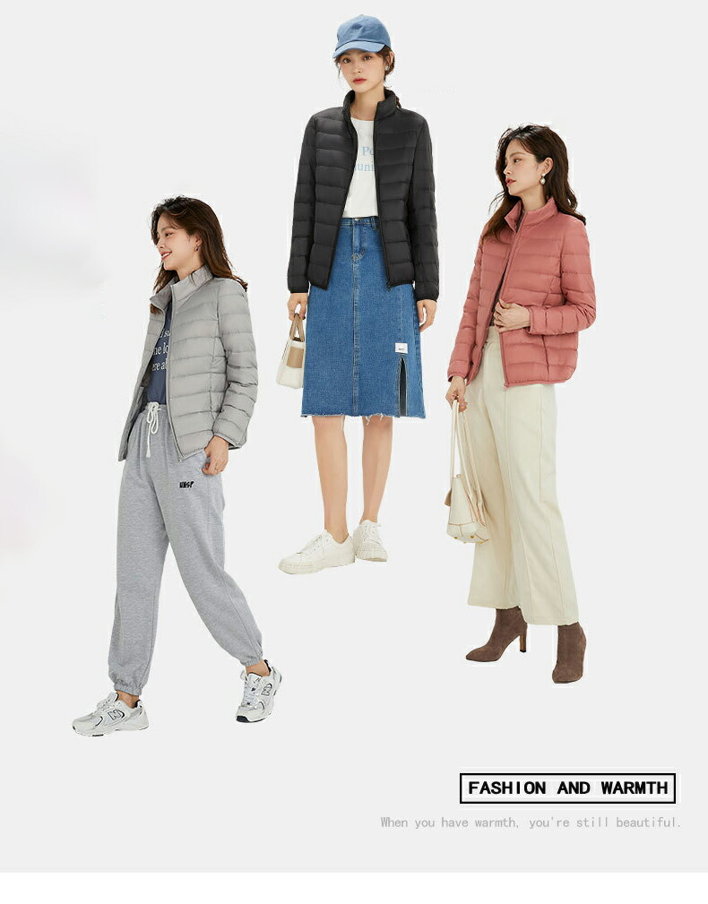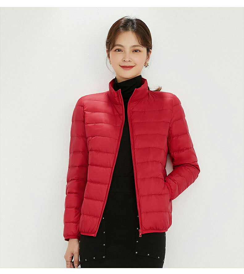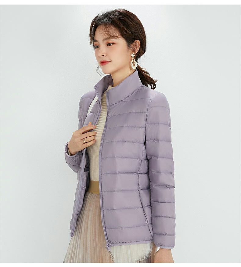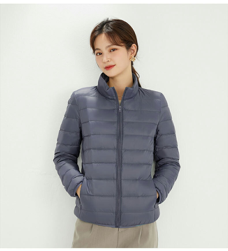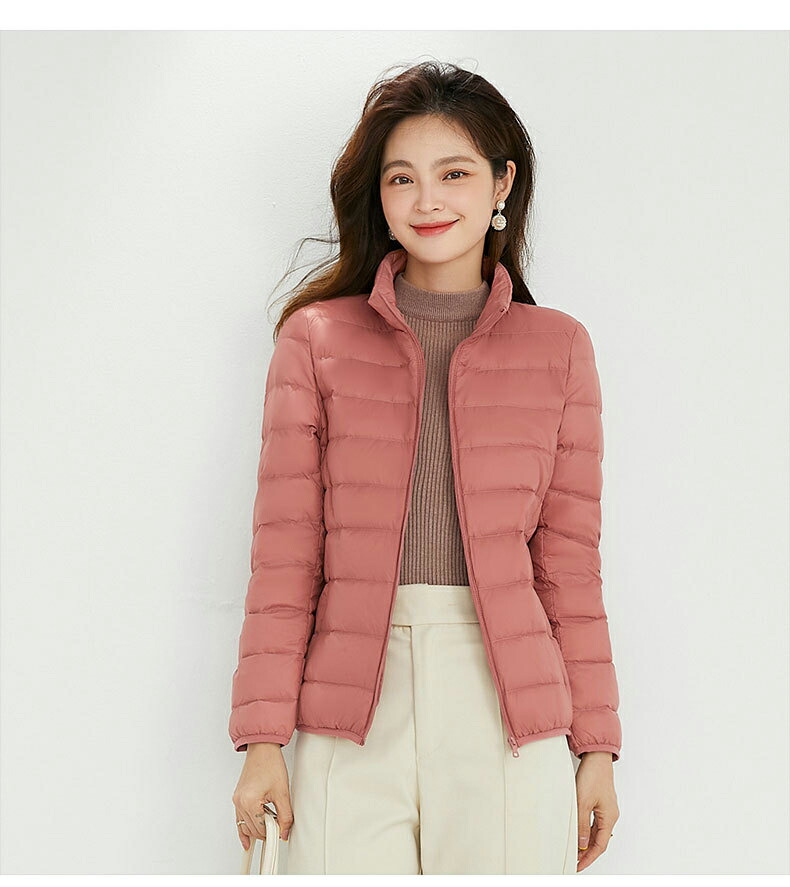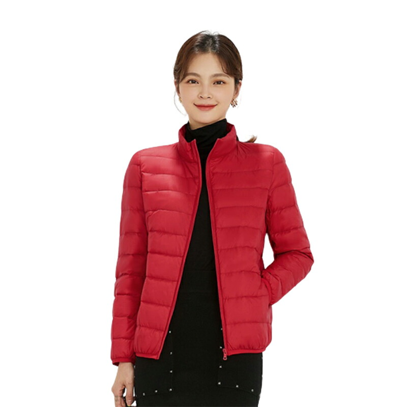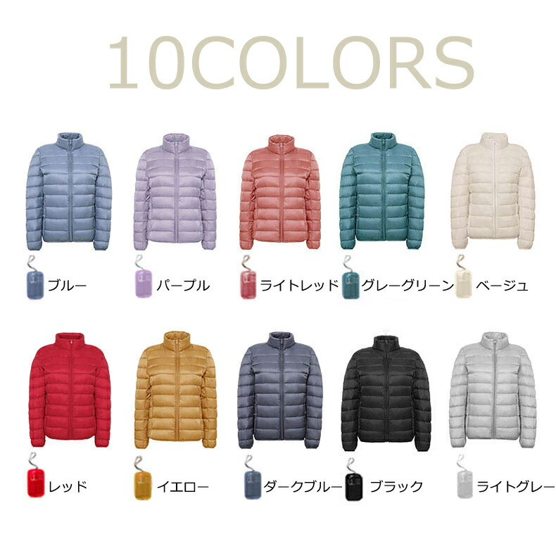 ダウンジャケット レディース コート ジャケット ダウンコート スタンドカラー 軽い 防寒 撥水加工 シンプル ショート丈 収納袋 ポーチ付き コンパクト アウター 秋 冬 大人 おしゃれ 通勤 春