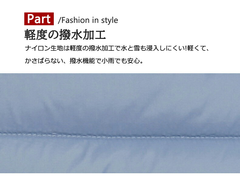 高品質のダウンフィルが優れた保温性を提供し、寒冷な風から保護します。