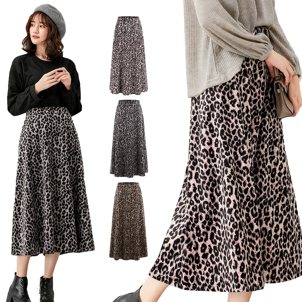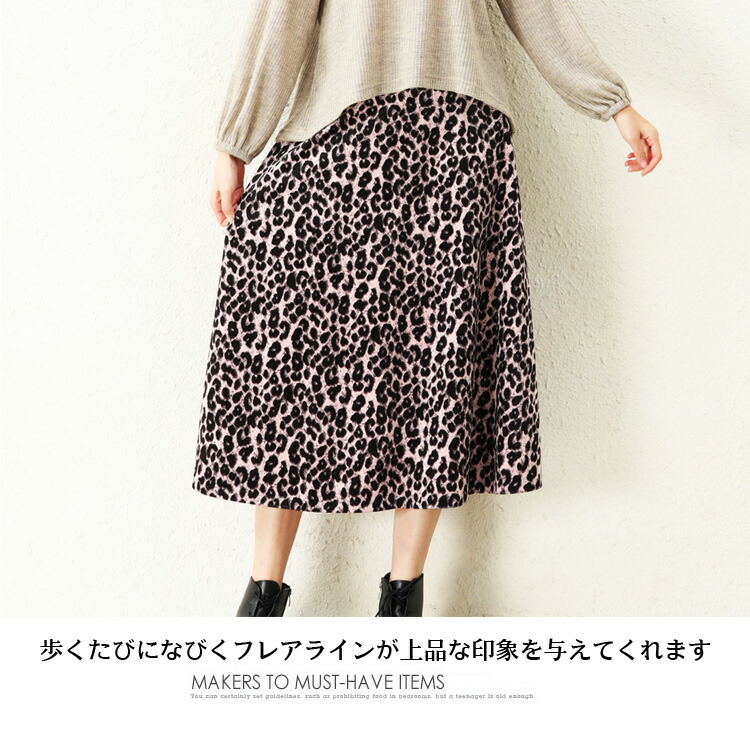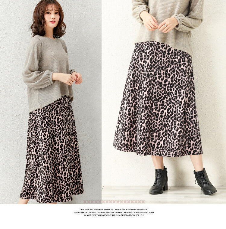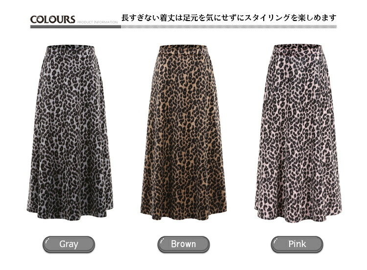 レディース ヒョウ柄 ロングスカート ボトムス スカート 通販 グレー ブラウン ピンク