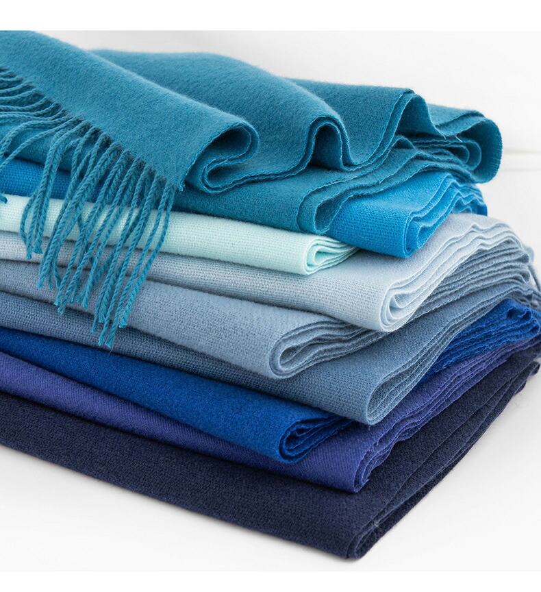 ワンポイント パープル 単色 新作 フリンジ付き 青 ウールマフラー カシミアストール カシミアタッチ お祝い マフラータオル なめらか起毛