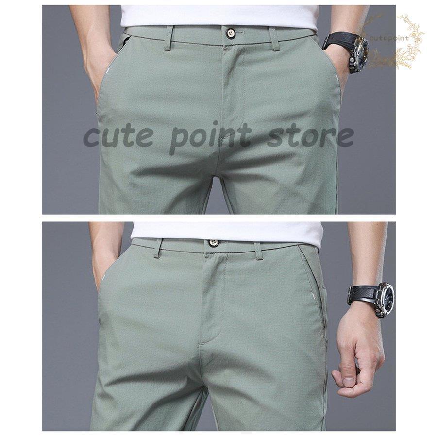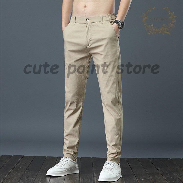 涼しいズボン メンズ ストレッチ 接触 ズボン パンツ 続々登場 アップルグリーン 黒 グレー ベージュ 28 29 30 31 32 33 34 36