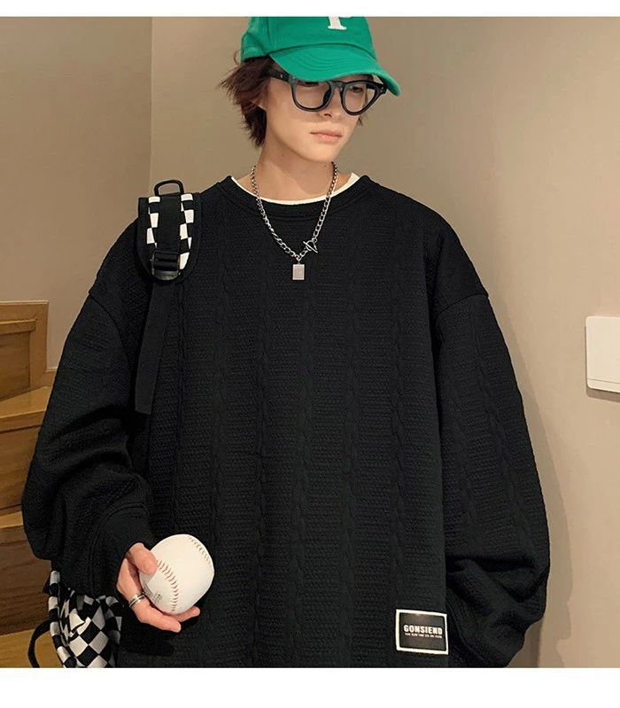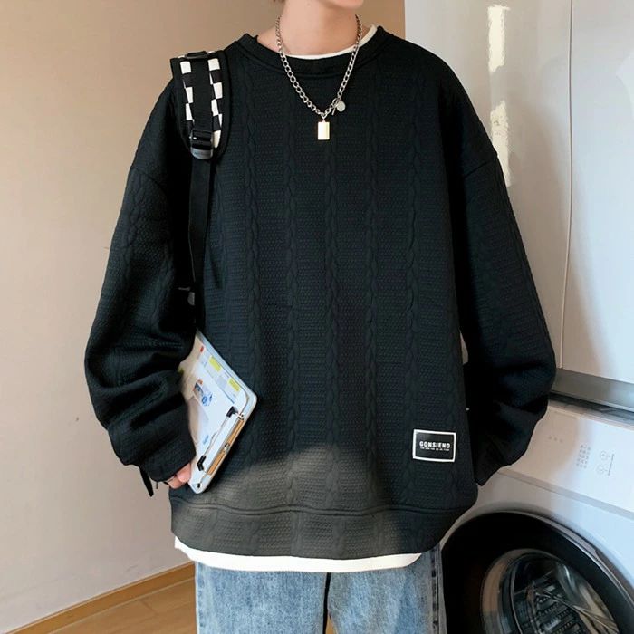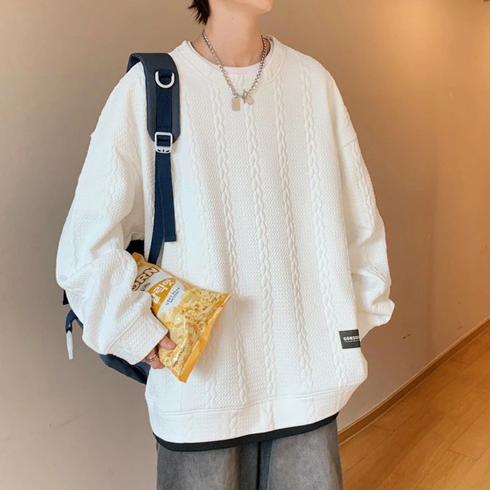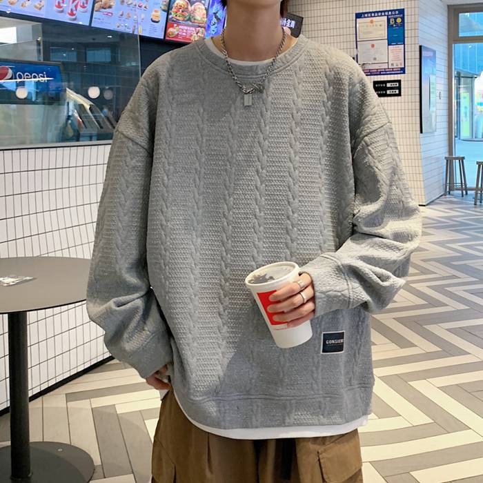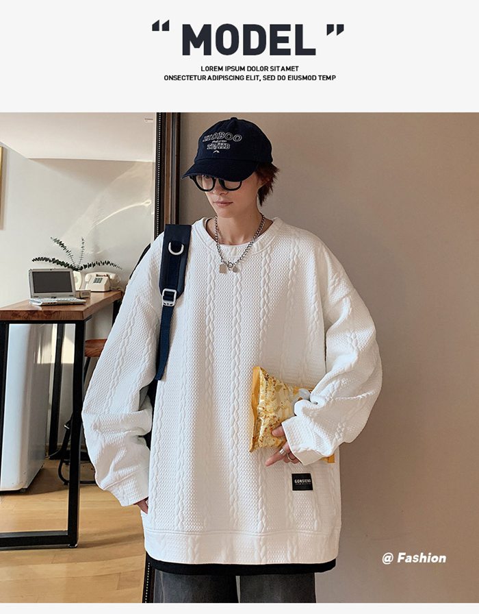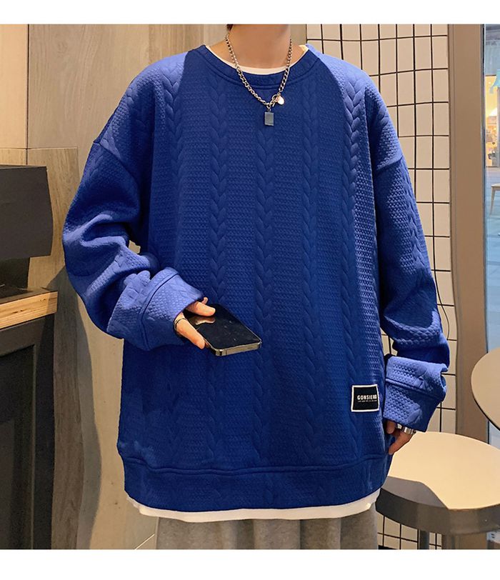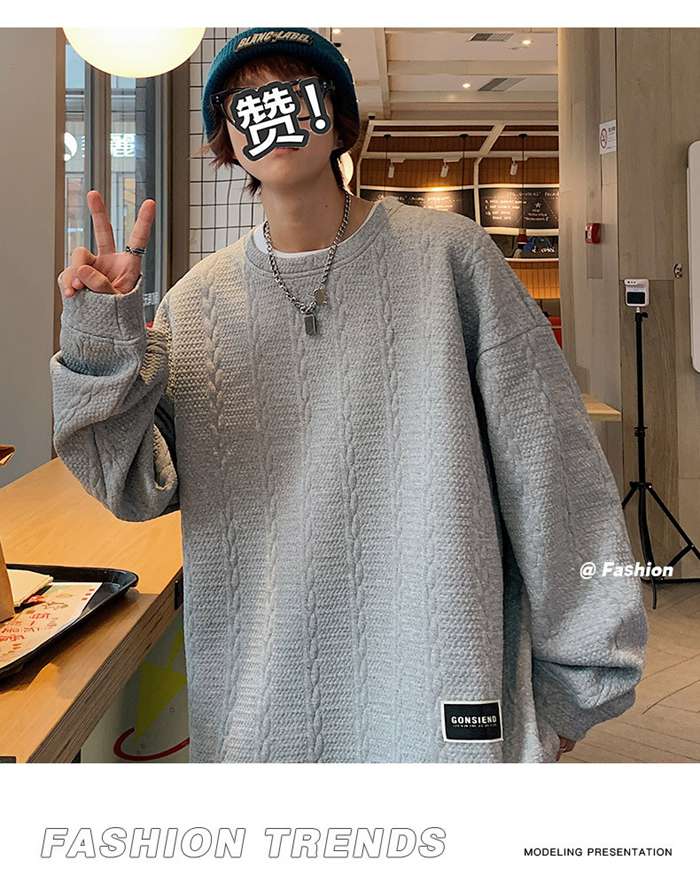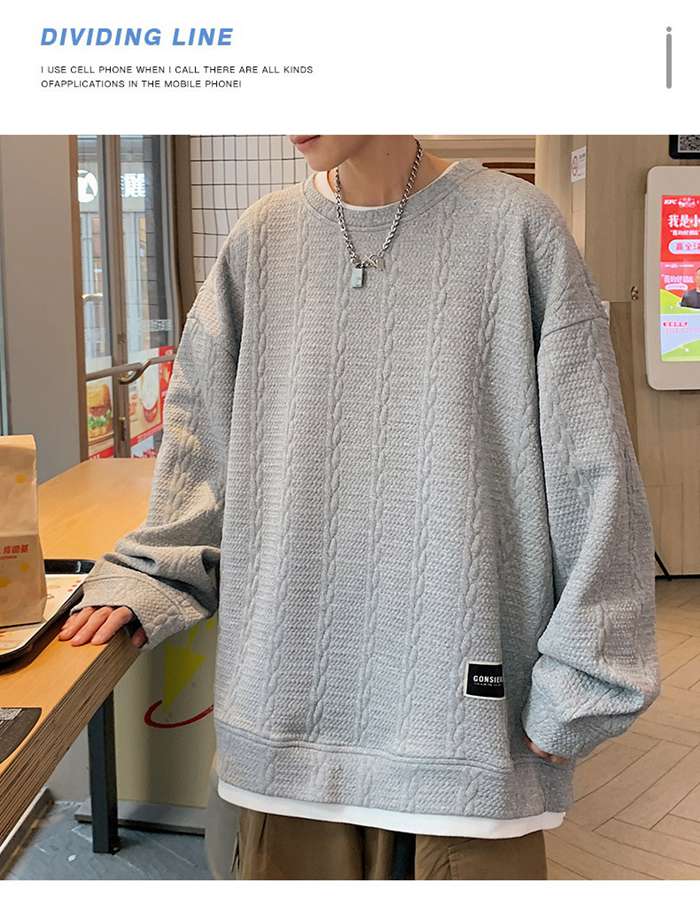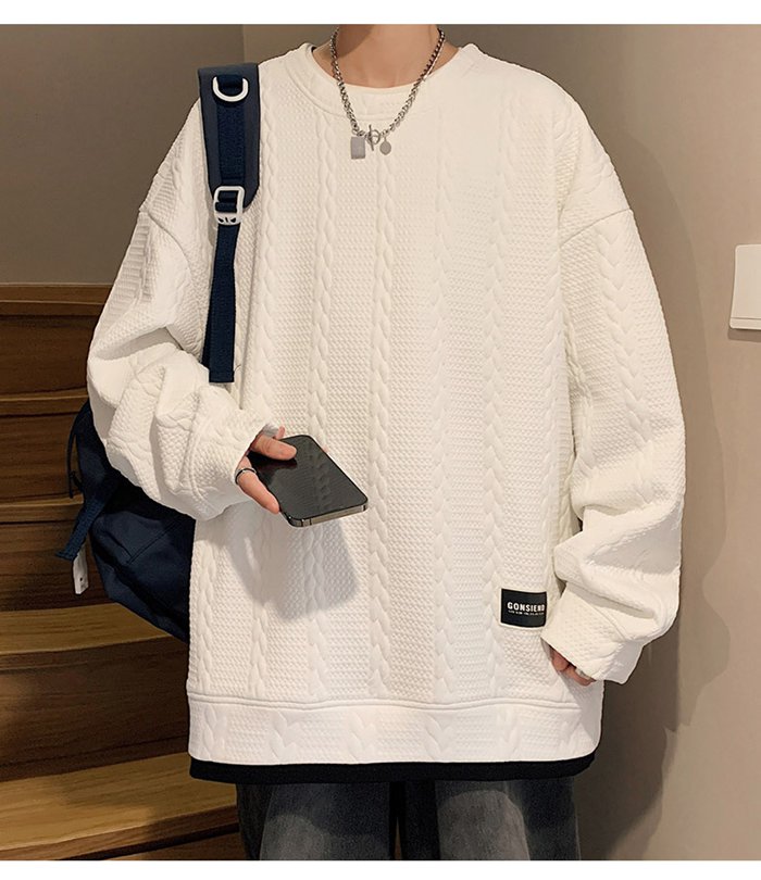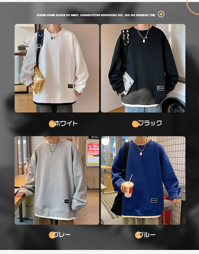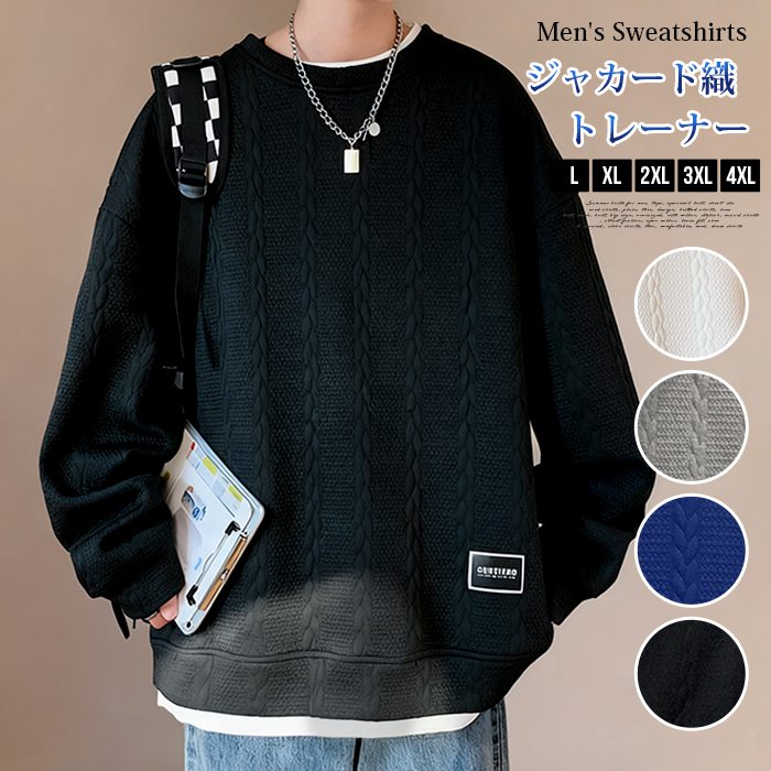 トレーナー メンズ ジャカード織 クル トップス スウェット トレーナー 通販 ホワイト ブラック グレー ブルー L XL 2XL 3XL 4XL