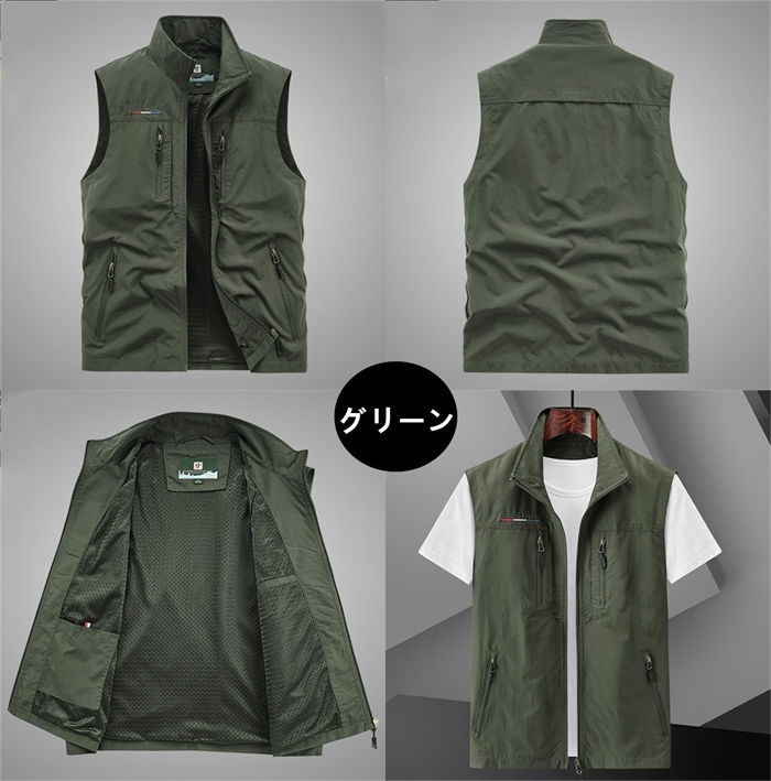 メッシュベスト メンズ ベスト 夏 お メンズファッション 豊富 グレー ブラック グリーン カーキ ブルー M L XL 2XL 3XL 4XL 5XL 6XL